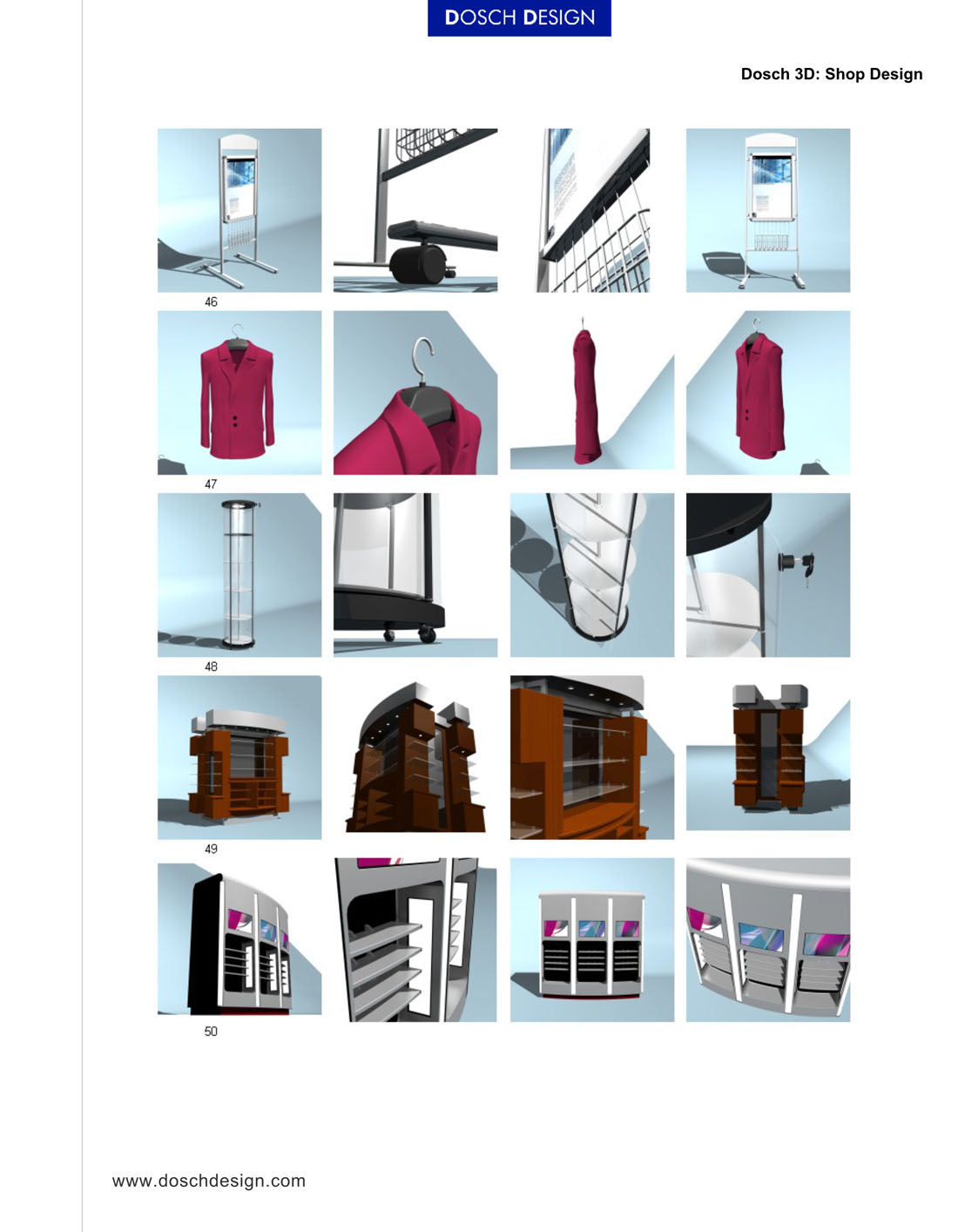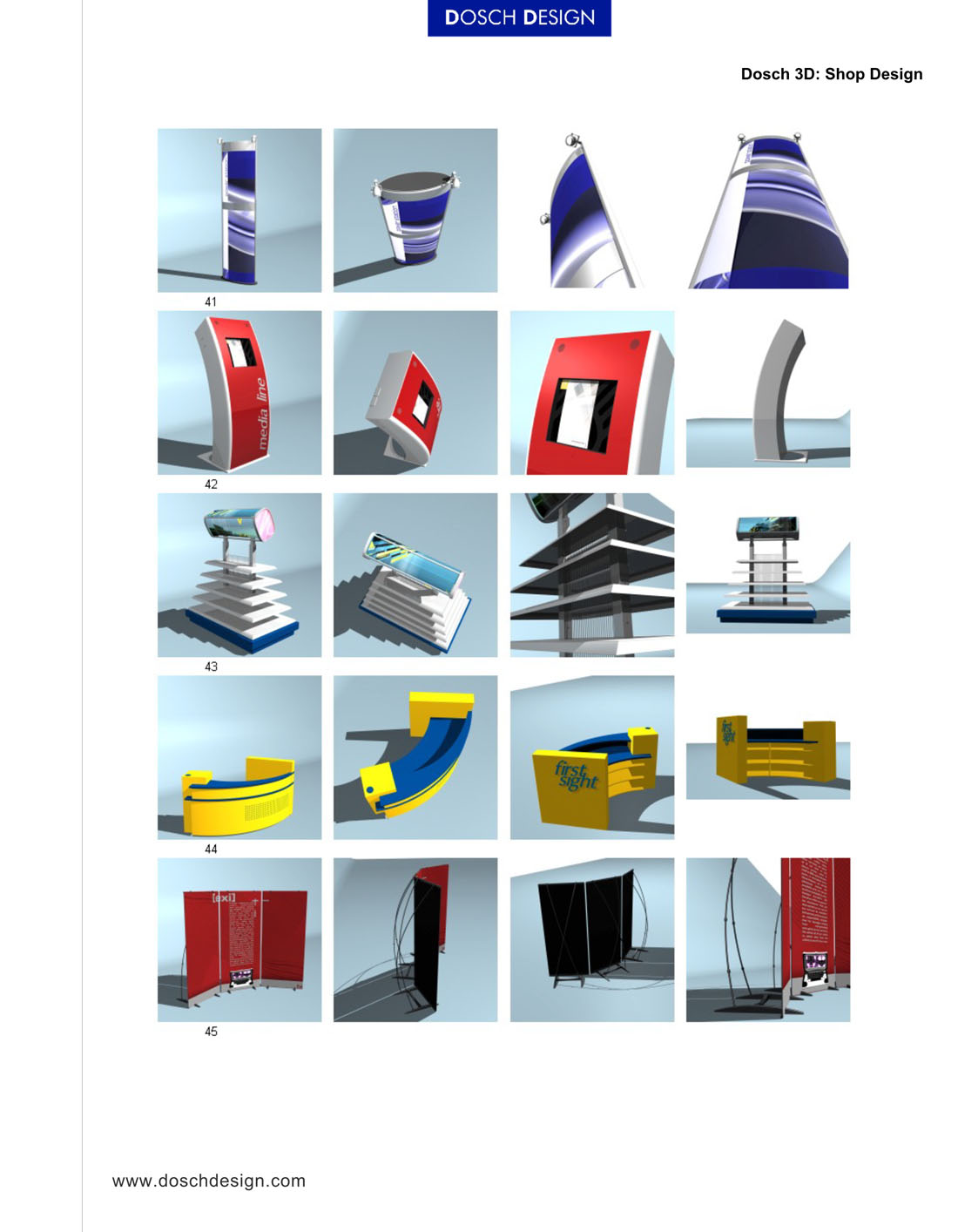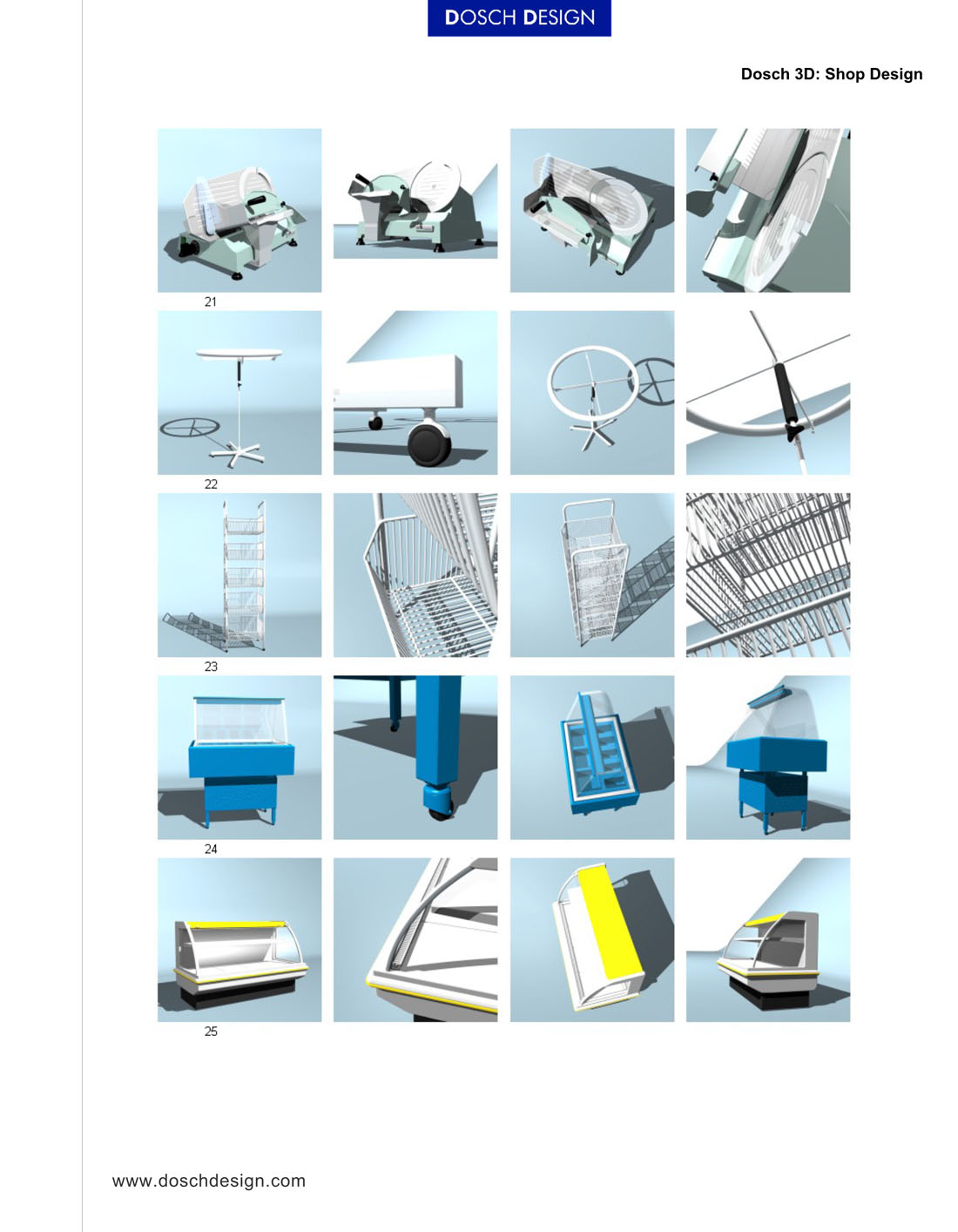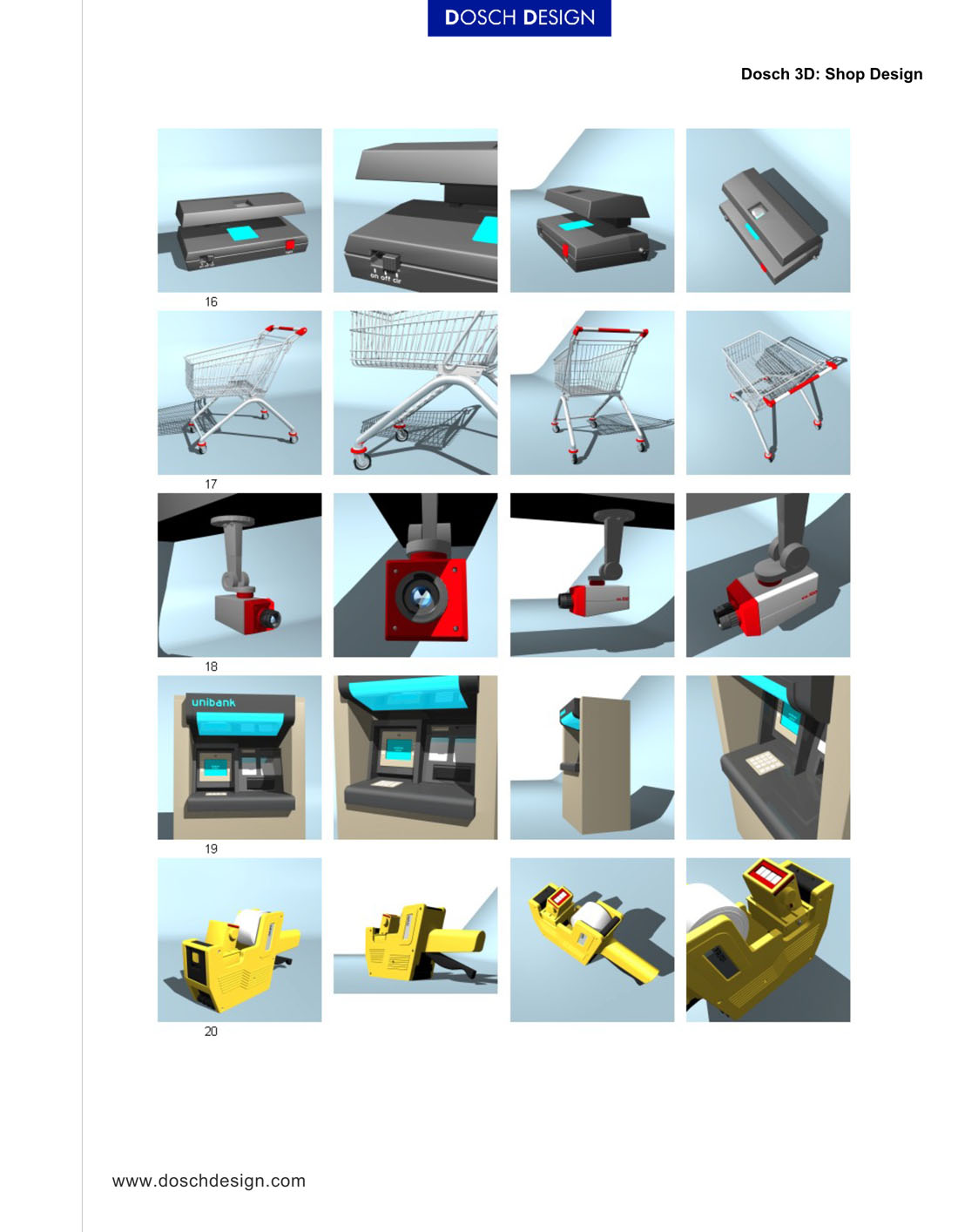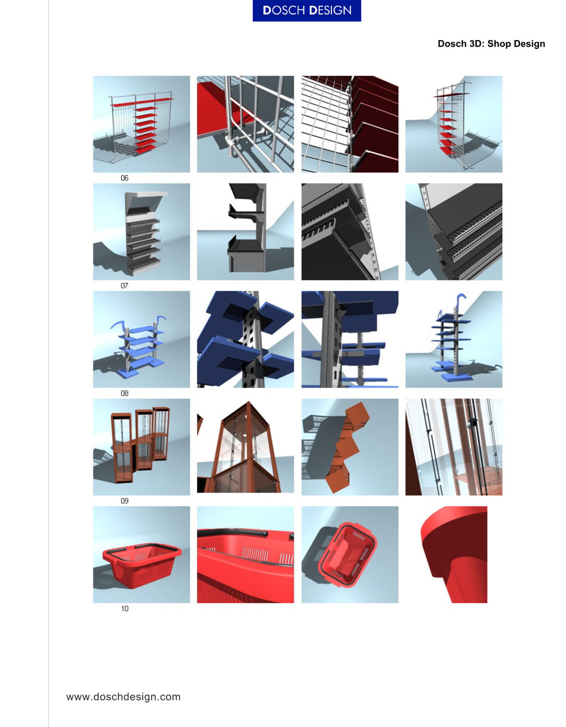 其中包括各种货架设计,大量重要的商店设备(包括购物车/购物篮,收银机,带传送带的结帐通道,POS扫描仪,终端机和支付系统)和促销显示器。