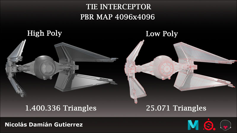 El High Poly、Low Poly y UV fueron desarrollados en Maya、Texturizado en Substance Painter y Renders finales en Marmoset。