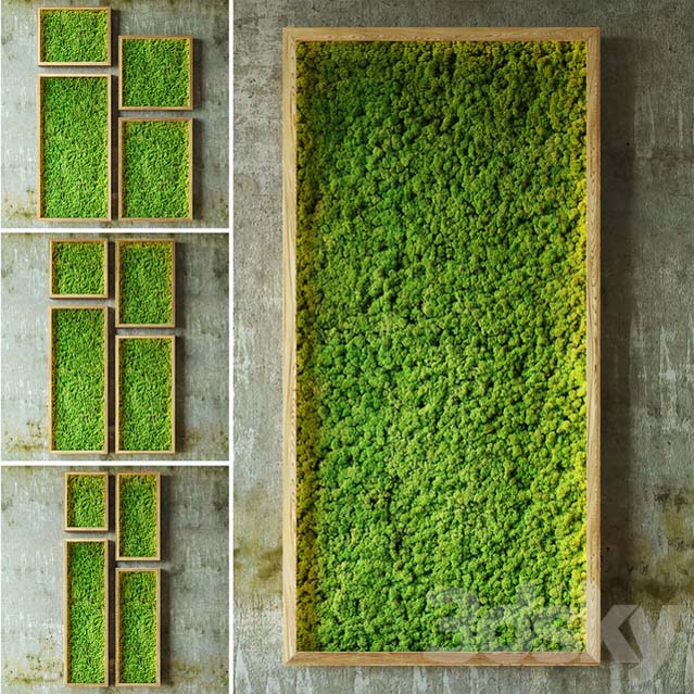Stabilized moss in a frame with LED backlight. Sizes of the canvas: -2000x1000 -2000x8000 -2000x6000 -1600x800 -1600x600 -1400x1000 -1200x800 -1200x600 -1000x1000 -800x1000 -800x800 -800x600 The archive contains Max files in corona and vray, also fbx files, all textures and previews. The paths to all textures are erased.