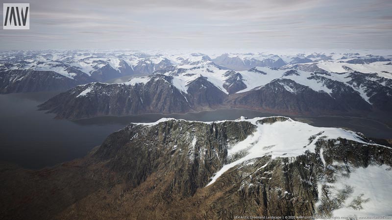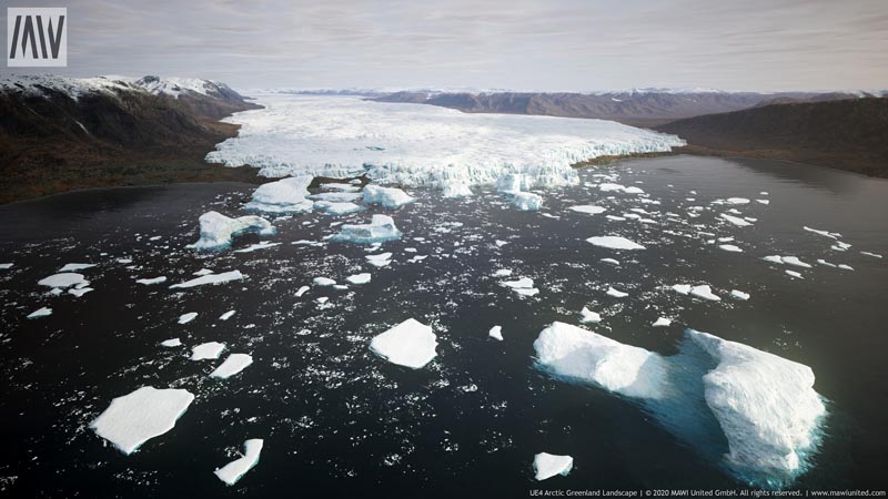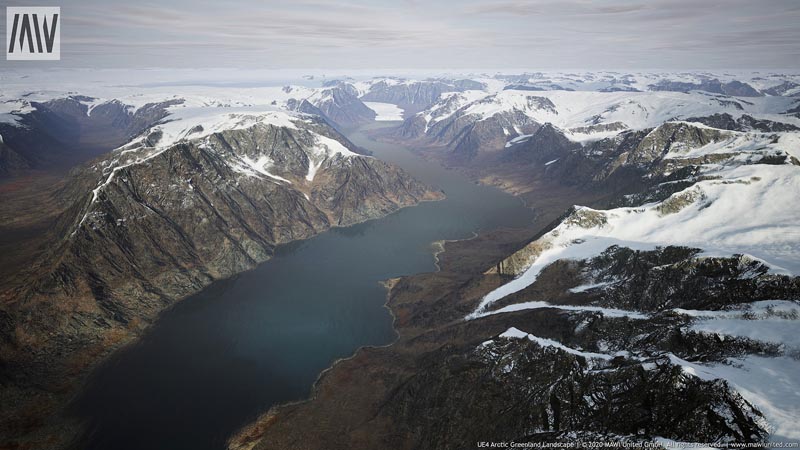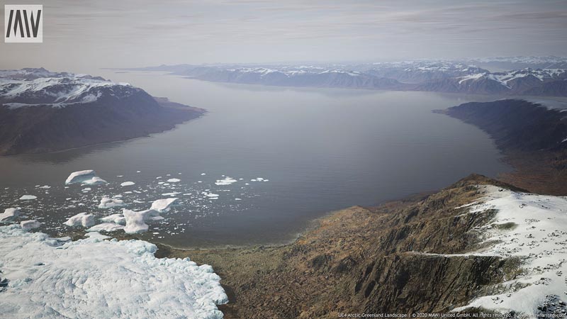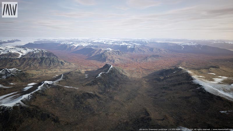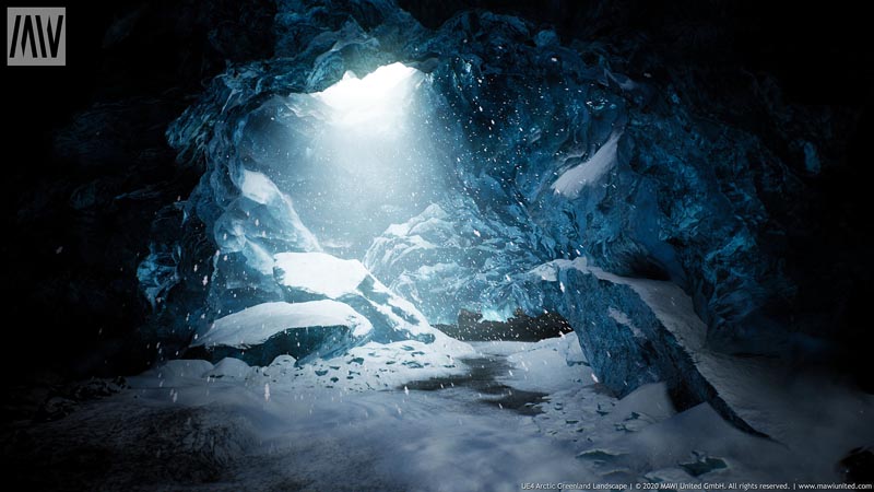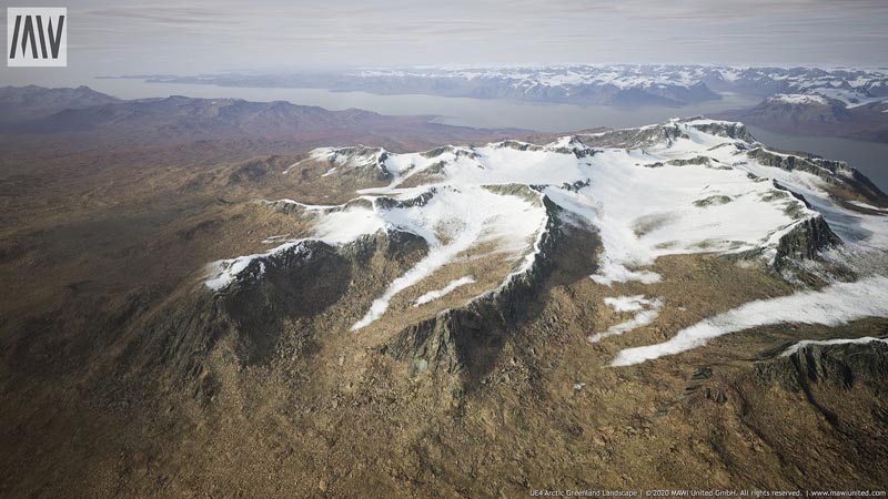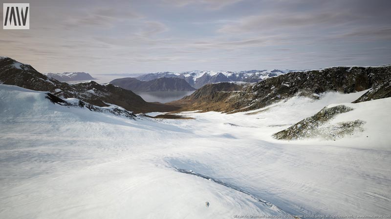 占地400平方公里的景观,带有逼真的照片色调:冰川,模块化冰洞,岩石,石头,各种植物等。游乐区周围的可见距离是3600平方公里的远景。具有9个可上漆层和动态水坑材料的自动化景观层系统。还包括可编写脚本的防风系统,程序性积雪和颗粒。高地面纹理和程序层细节。功能强大的材料和景观着色器,可高度调整。