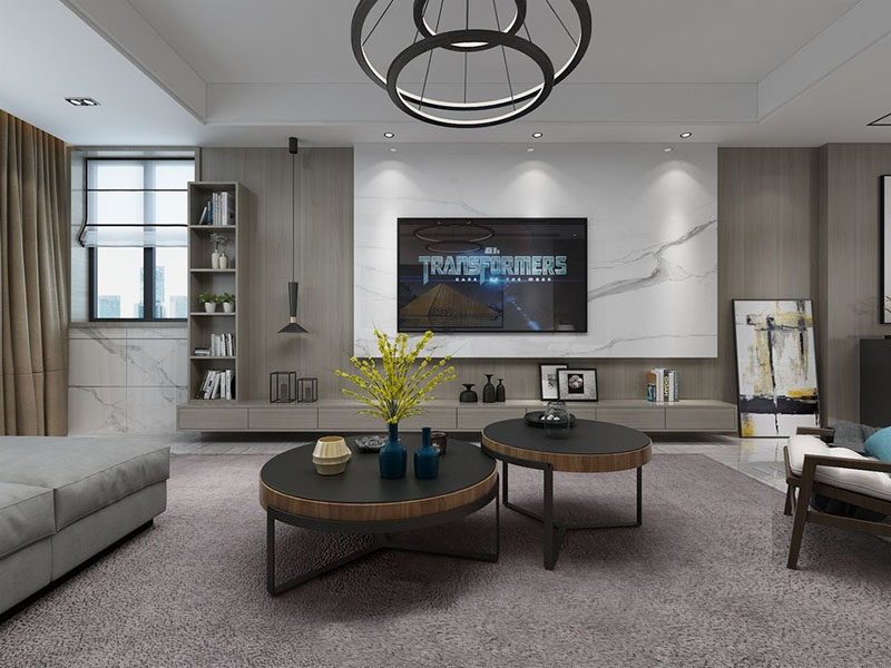 现代客厅圆形茶几电视墙电视机组合素材之家精选3D模型