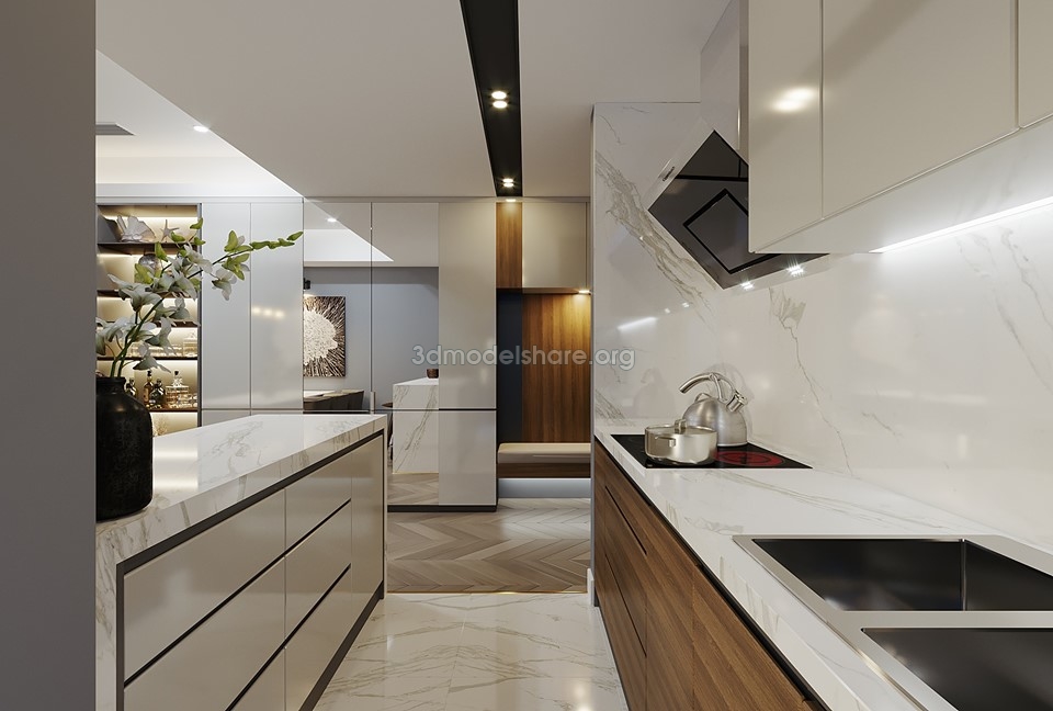 客厅开放式厨房室内场景素材之家精选3D模型By QuyGia