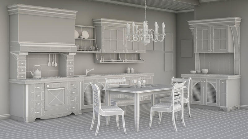 乡村复古风格厨房整套素材之家精选3D模型