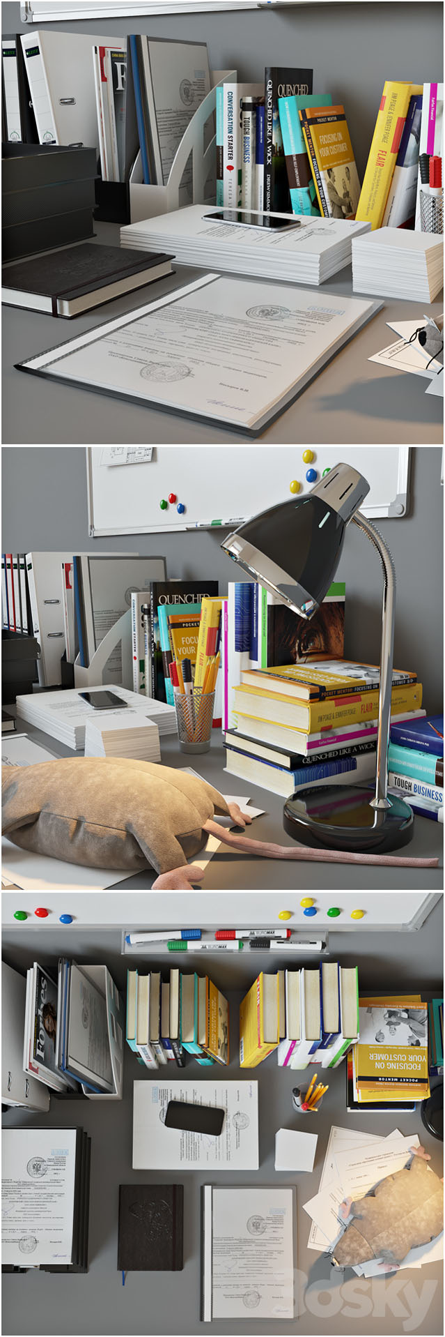 办公室的设置细节包括:书籍,纸质文件夹(2种),纸质存储(2种),带磁铁的磁性板90x120厘米,记号笔,带铅笔杯的图片,iphone6智能手机,纸叠, 阅读。轻型Odeon轻型2221/1吨,宜家大鼠,笔记本。--------------------所有分组和skollapseno含义。在场景中有83257个多边形。-------------------- 2014和2011 MAX(VRay和Corona)档案+ 2010 FBX档案----------------- ---漂亮的效果图吧!