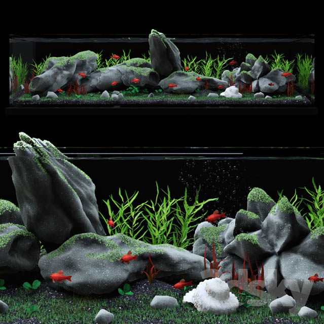 鱼缸内石头和小鱼场景素材之家精选3D模型