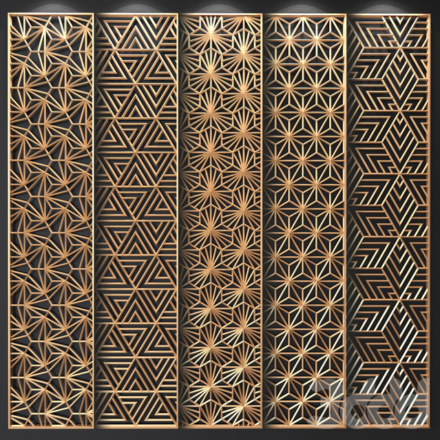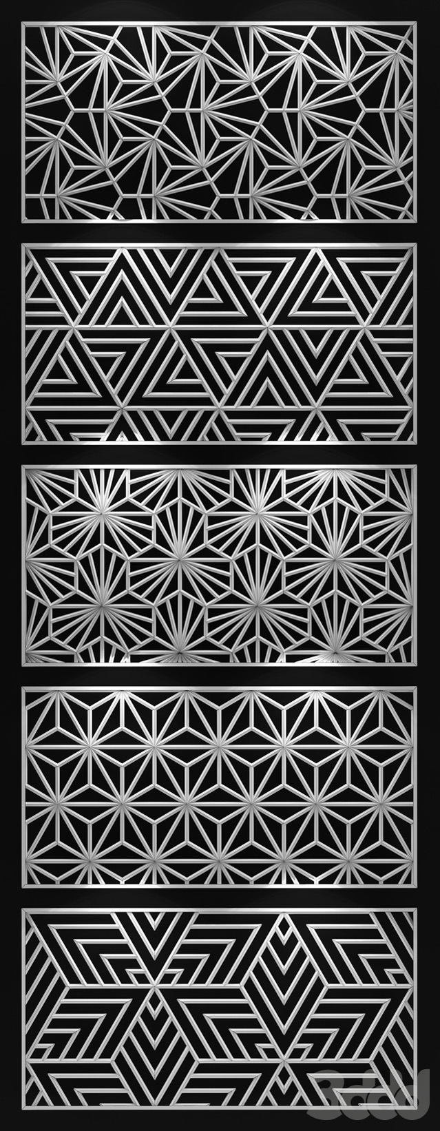 该模型包括5个具有不同几何图案的装饰性隔板。