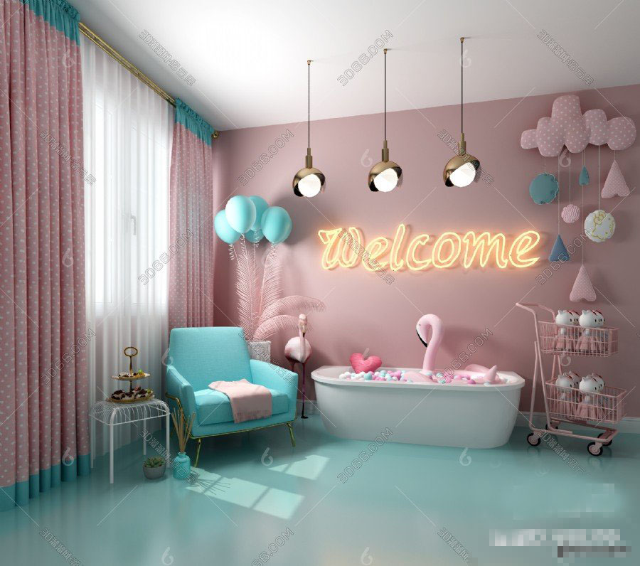 粉色系儿童房室内场景素材之家精选3D模型