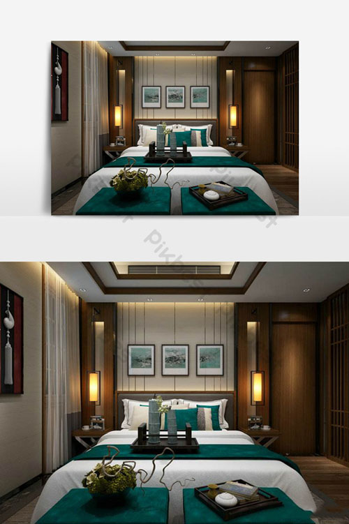 中式沉稳大气花色卧室场景素材之家精选3D模型