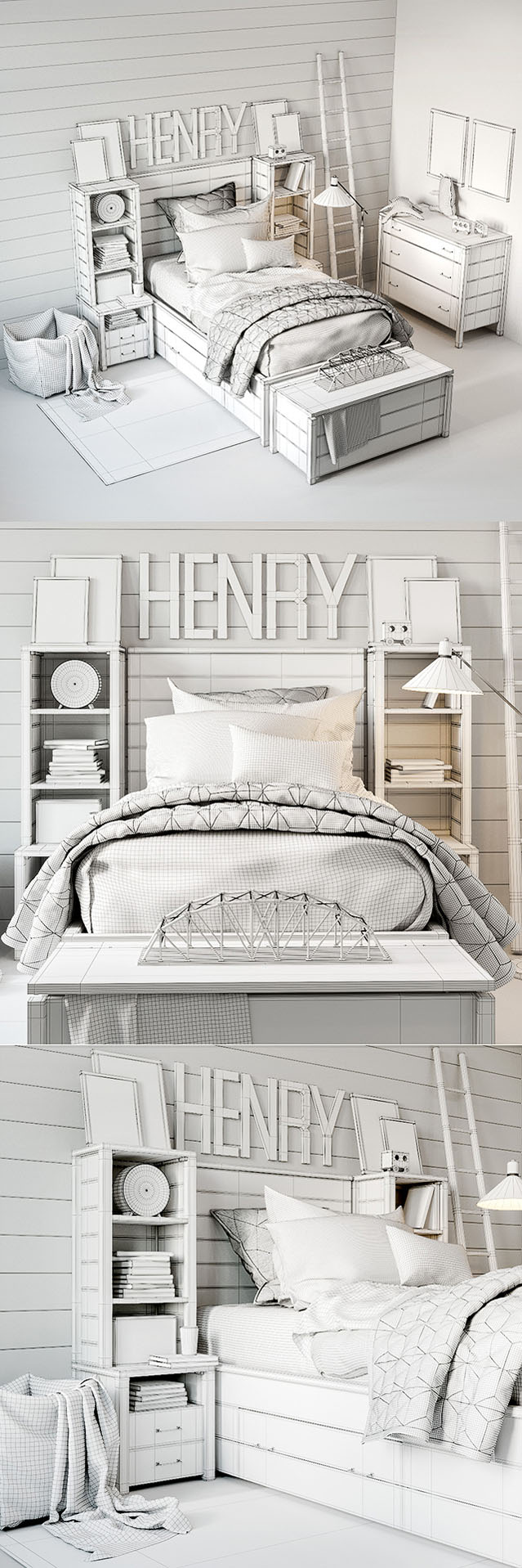 格子风格现代儿童卧室素材之家精选3D模型