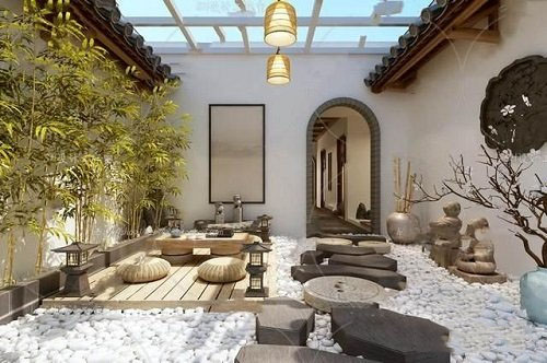 新中式酒店休闲场所走廊庭院景观素材之家精选3D模型