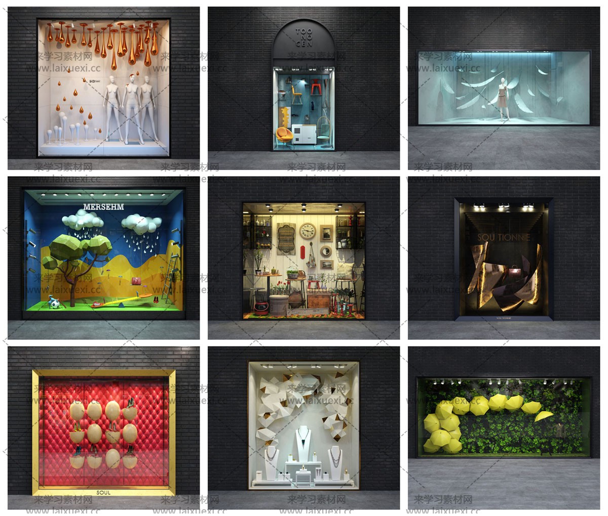 36款购物中心商店商业街道可视化门面场景素材之家精选3D模型