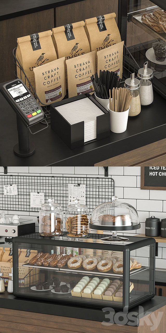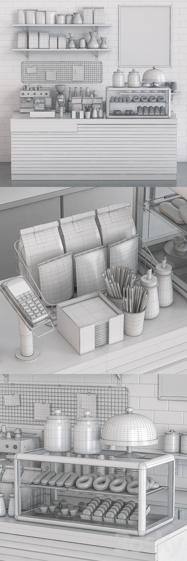 咖啡店带有咖啡设备的柜台和货架素材之家精选3D模型
