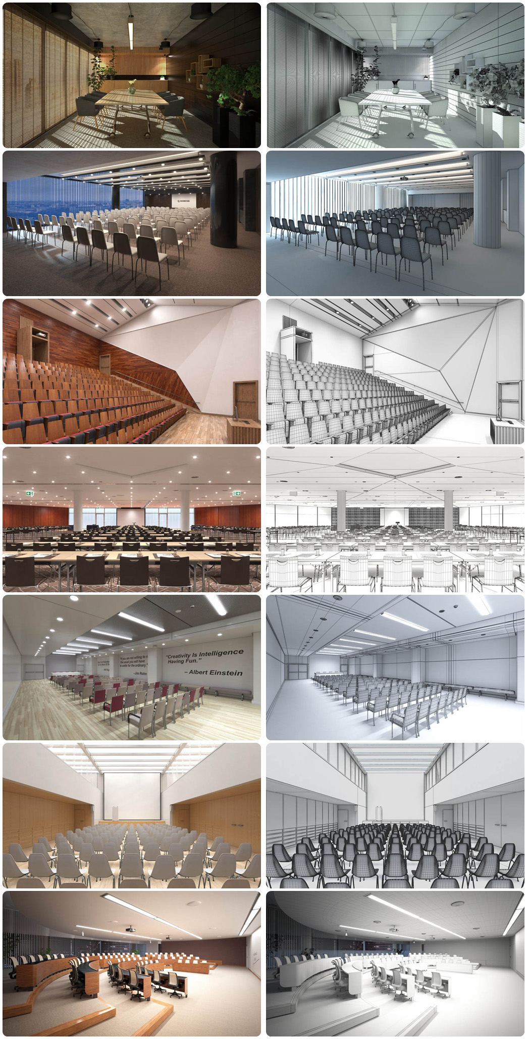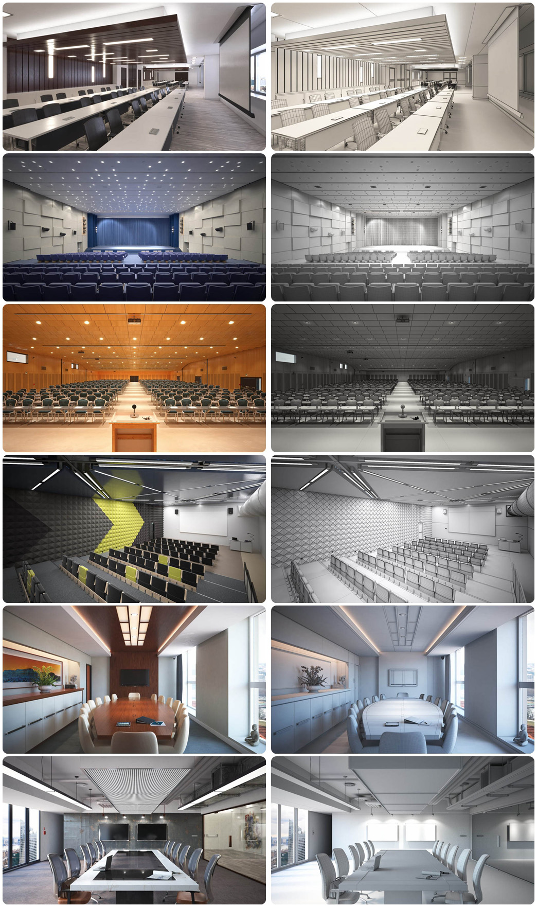 Archinteriors卷。53-3ds Max和V-Ray的20个高质量场景的公共室内设计集合。您将在这里找到会议室,办公室和礼堂。所有场景都带有纹理和材质,并且与3ds Max和V-Ray兼容。包括OBJ和FBX格式。