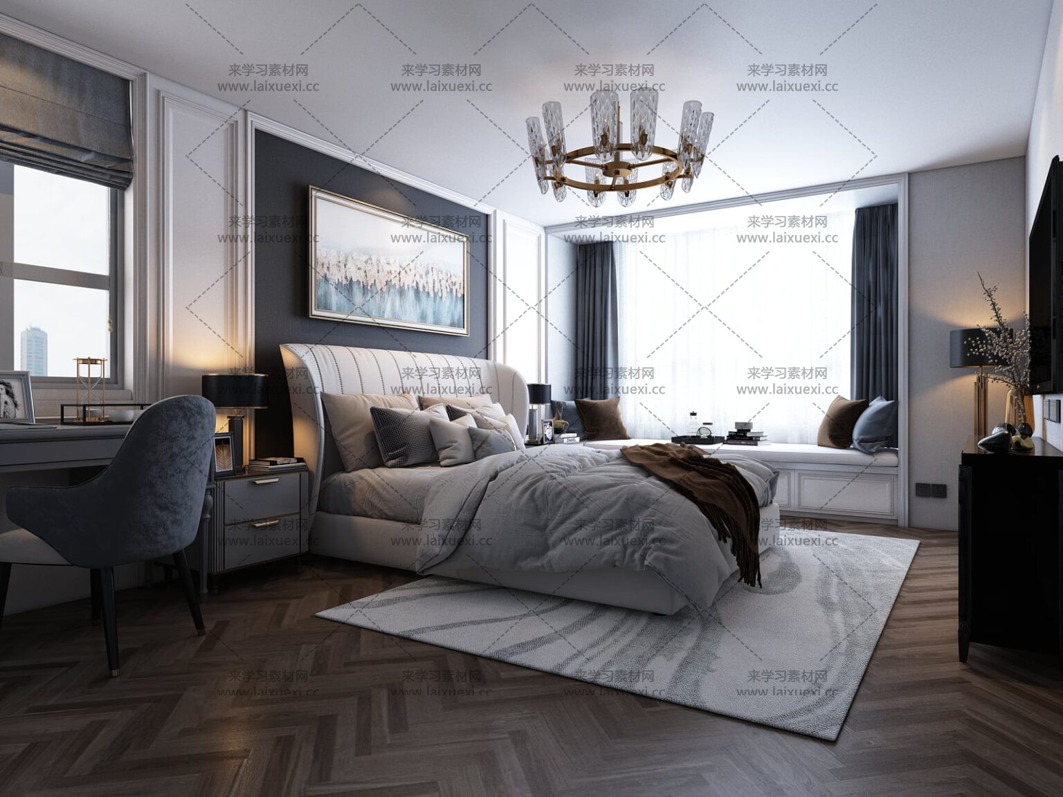 今天素材之家给大家分享的这款3D模型资源名称为:现代卧室场景3D模型By Le Anh Tuan,内容与卧室场景3D,室内场景3D,3DMAX,3D模型,MAX相关,文件大小为273.1 MB,模型文件格式为MAX。