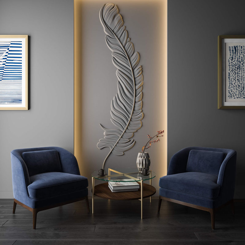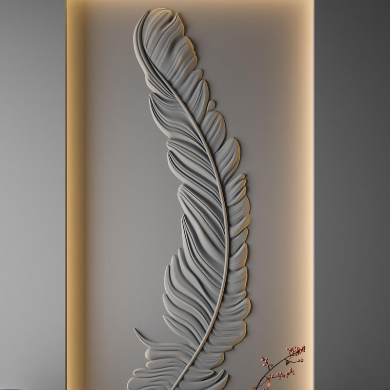 羽毛浅浮雕面板墙装饰素材之家精选3D模型