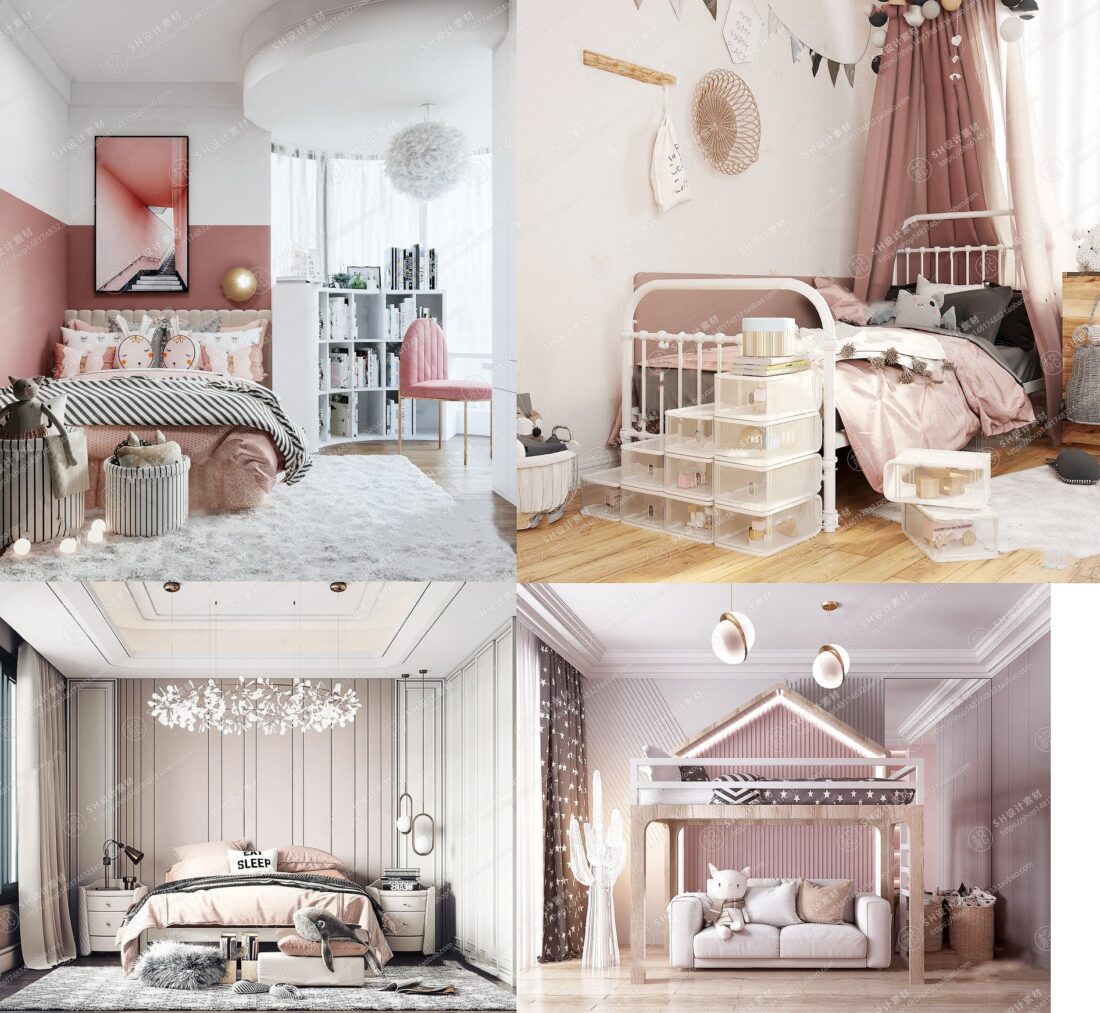 4款粉色儿童房公主房女孩房素材之家精选3D模型By DoanNguyen
