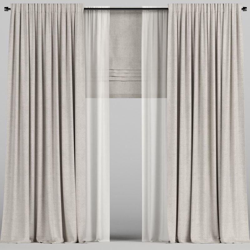 米色窗帘绢网和罗马帘素材之家精选3D模型