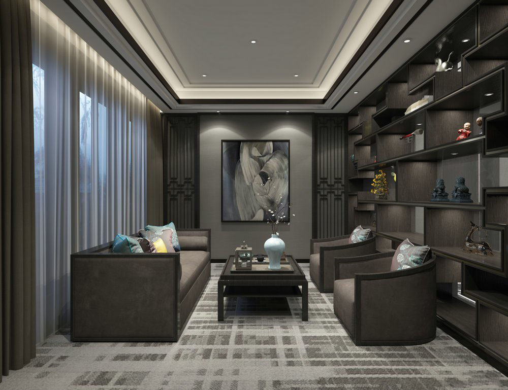 带有装饰架的现代客厅场景素材之家精选3D模型