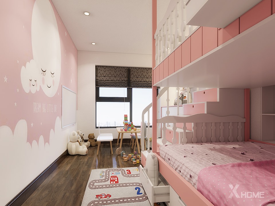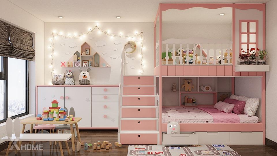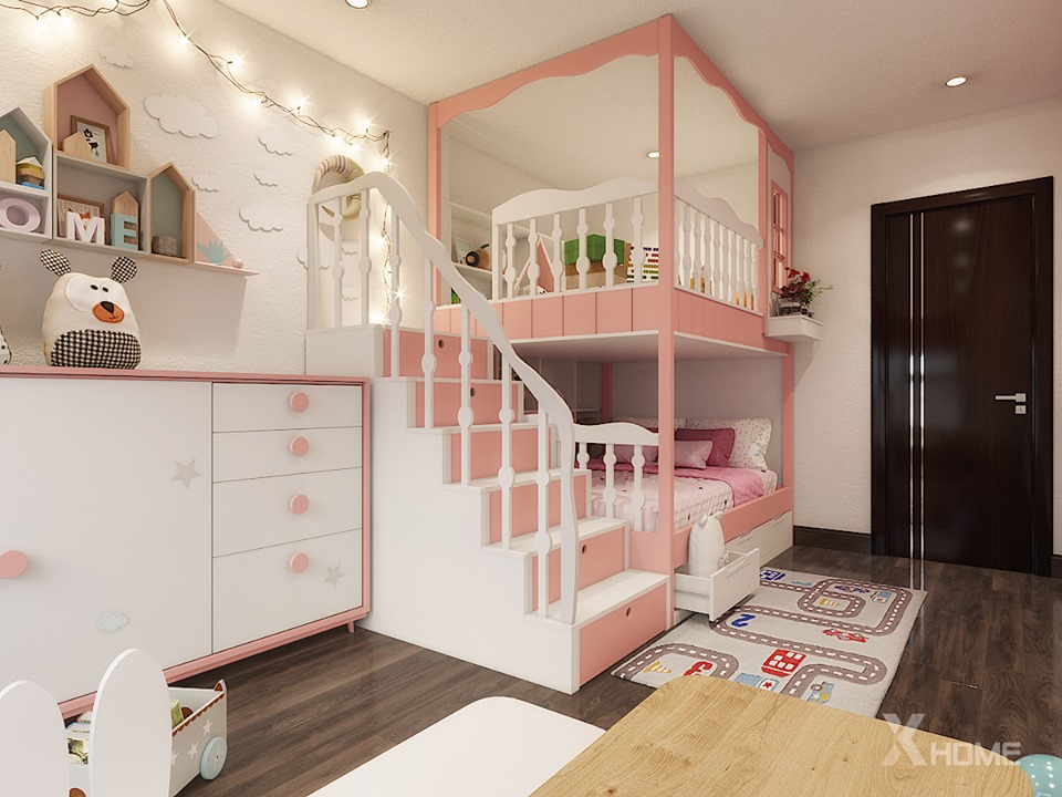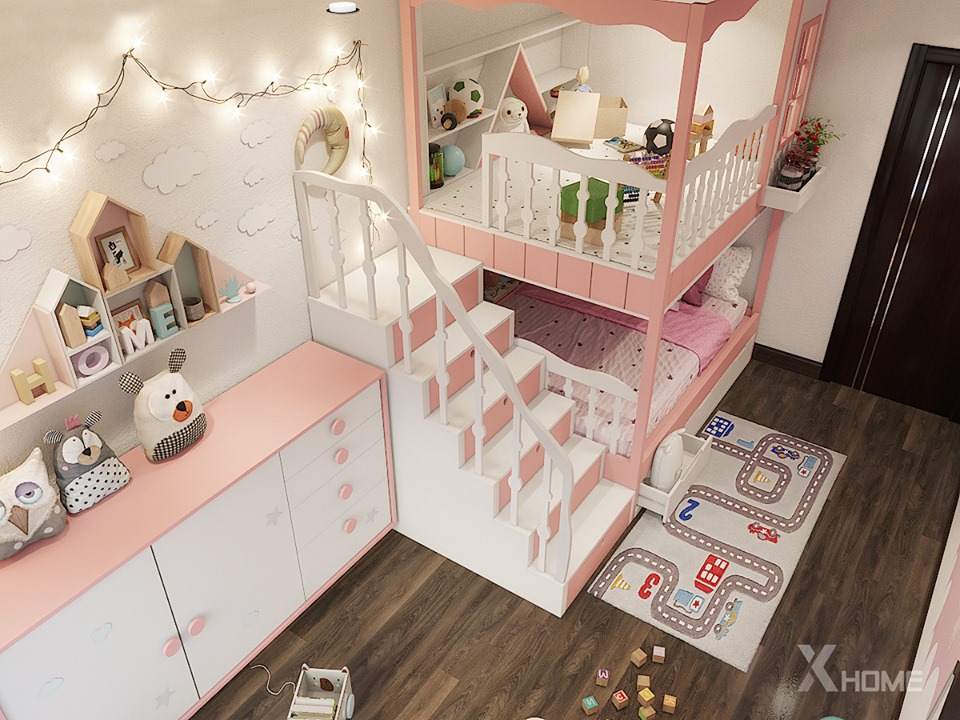 粉色儿童上下双层床儿童卧室场景素材之家精选3D模型By VanTrung