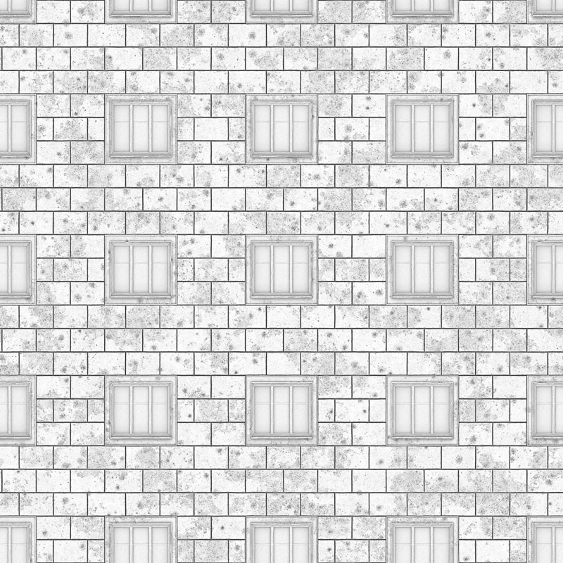 带有蒙版 窗户 PBR 纹理的无缝(可平铺)砖墙,带有八张贴图:反照率/漫反射、反射、光泽度、高度/位移、粗糙度、金属度、环境遮挡和法线贴图。 分辨率:8192x8192px 和 4096x4096px。