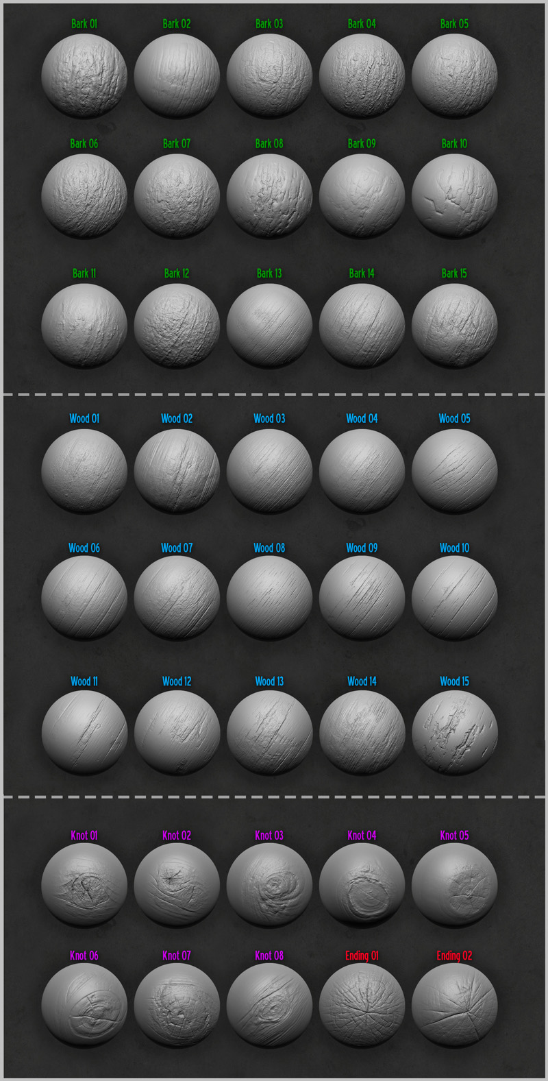 ZBrush木纹笔刷Zbrush Alpha Pack – Wood & Ground