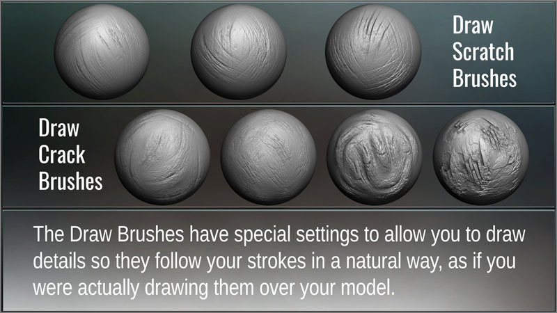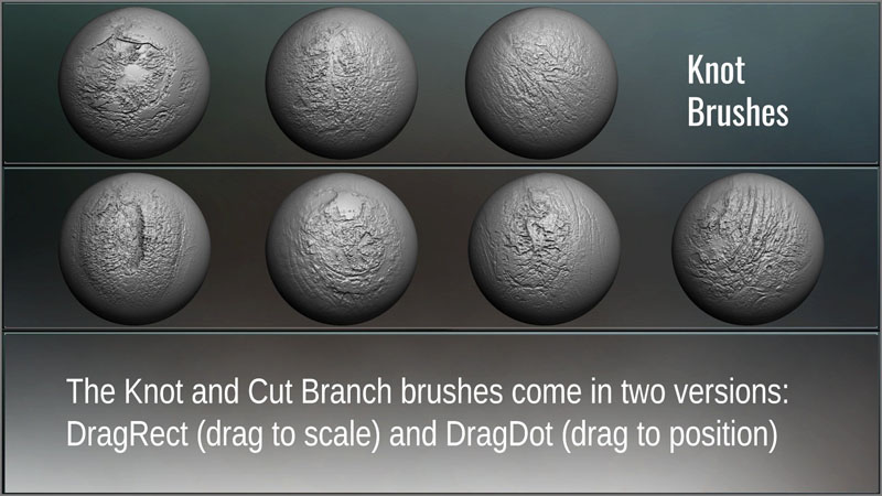 - 节、裂缝和切割树枝的 VDM 刷子。这些刷子同时增加了体积和细节,并与形状的其余部分完美融合。