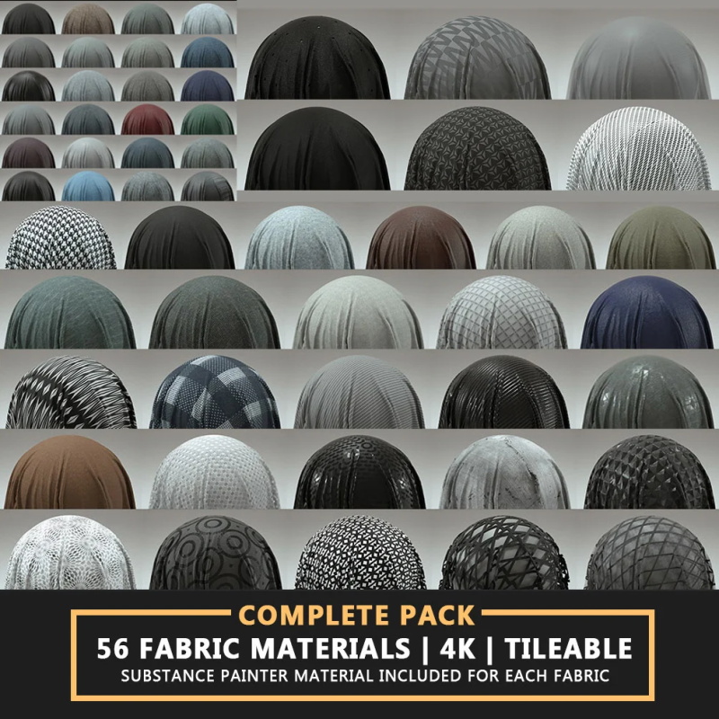这是完整的包,包括面料包的第 1 部分和第 2 部分。 它包括 52 种 4K 分辨率的可平铺织物材料(+ 4 种额外材料)。 还为每种织物提供了一种物质画家材料。 使用 Substance Designer 扫描和增强所有材料。