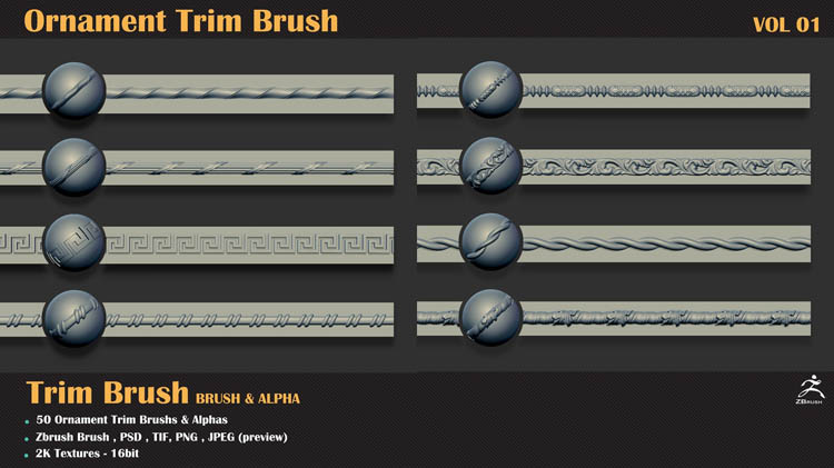 50个Zbrush装饰修剪笔刷和素材之家精选3D模型OBJ,MAX格式