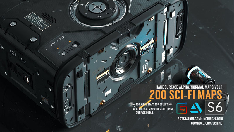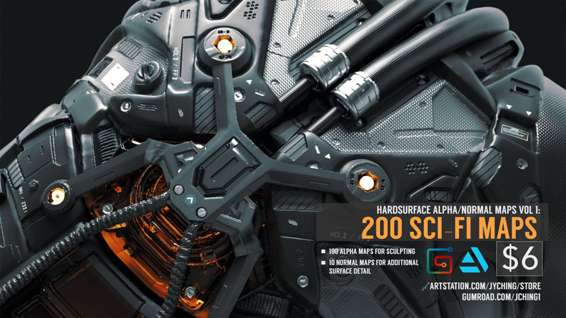 190 张 Alpha 贴图的集合,用于在 Zbrush 中进行硬表面建模和雕刻。