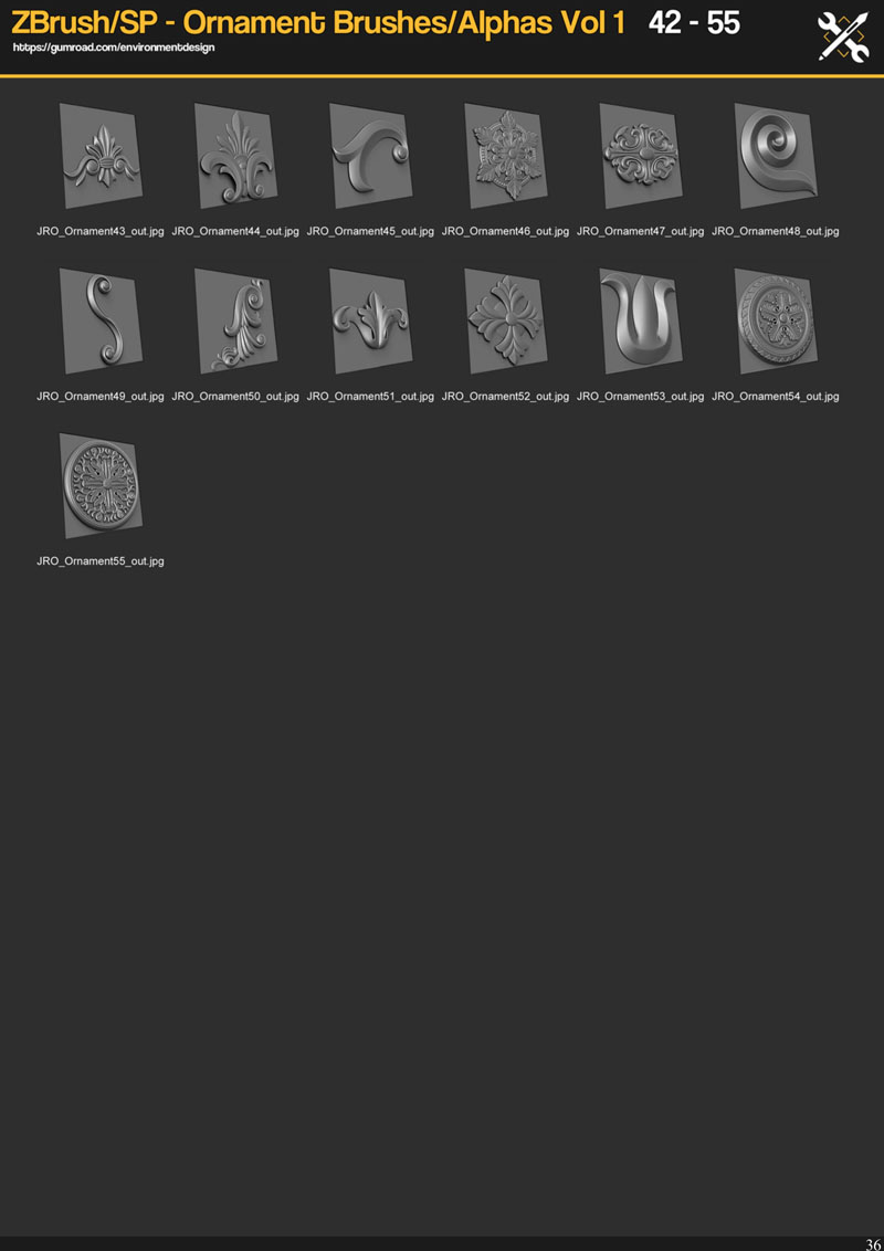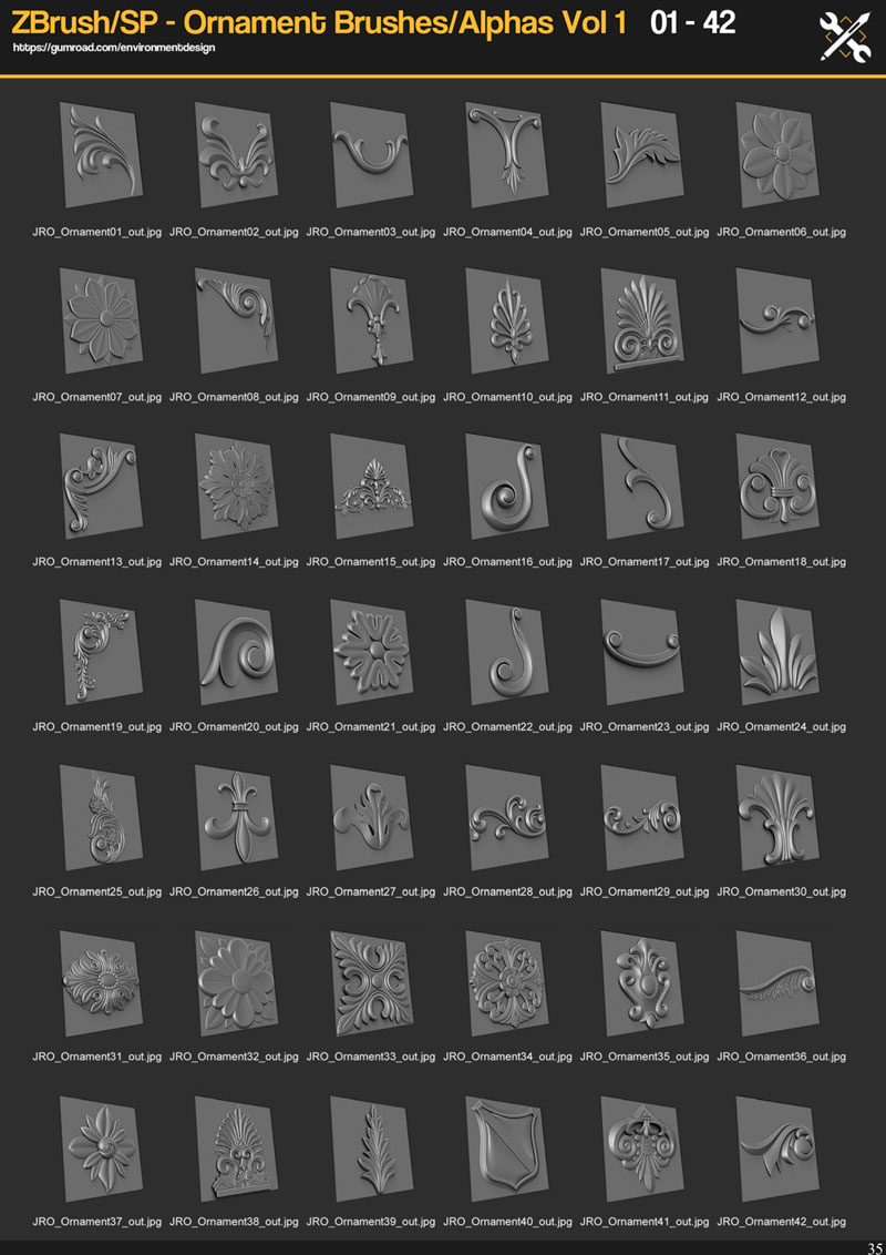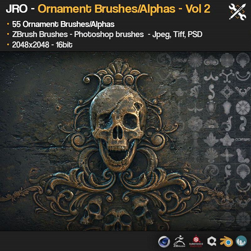 This is a Ornament alpha/brush set for ZBrush, Substance Painter, Quixel DDO and NDO etc.