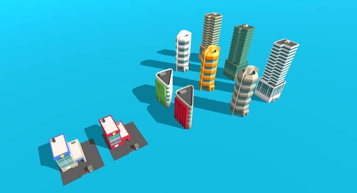 低多边形,风格化和模块化的城市集。非常适合城市场景。易于构建。实际缩放。包装中有37个型号。在Unity 2019中渲染。包括示例场景。包括;