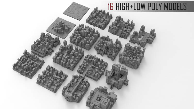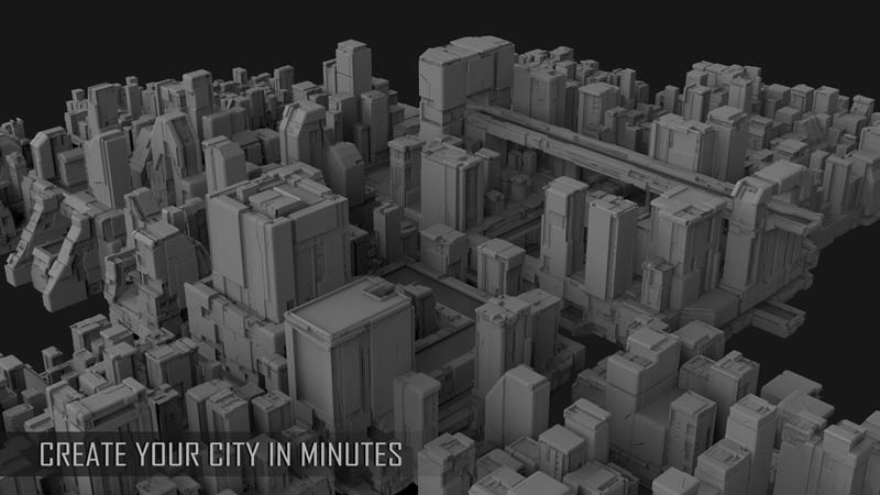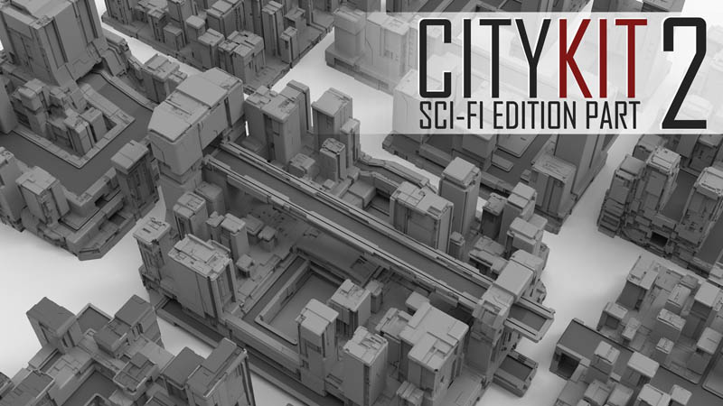 Kitbash软件包,用于快速创建科幻主题城市,以帮助您完成插图/磨砂画等。