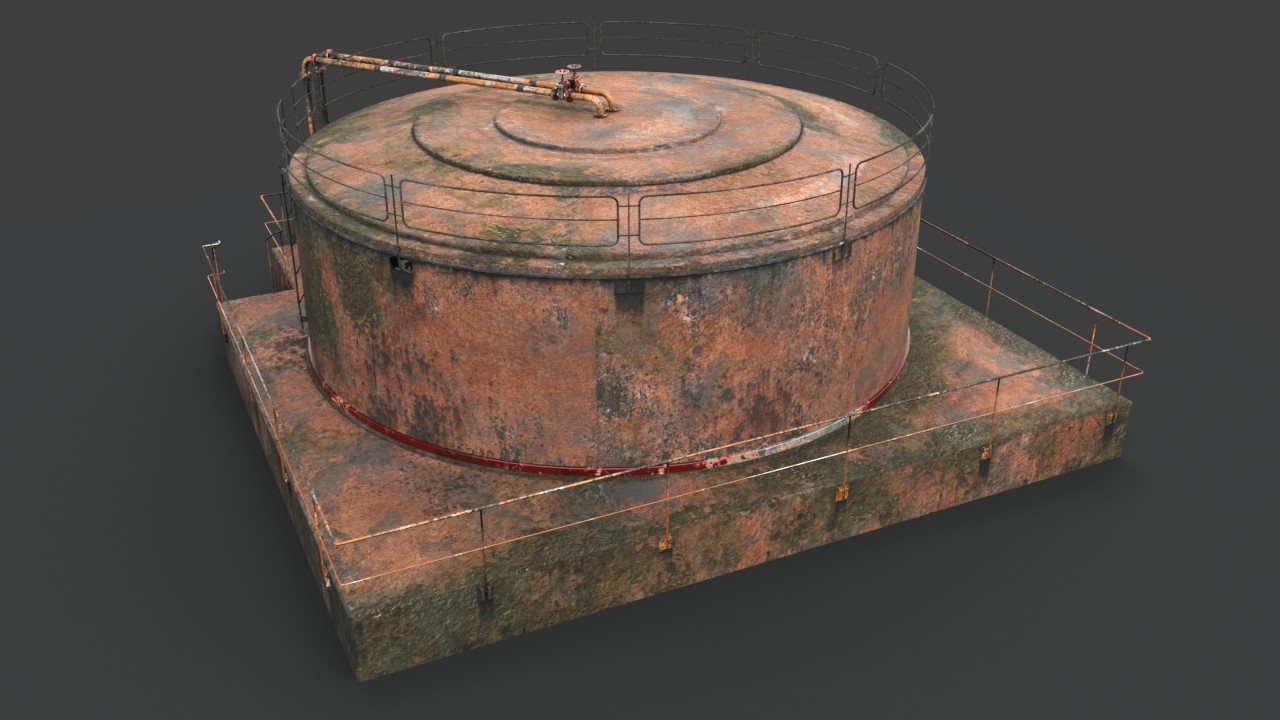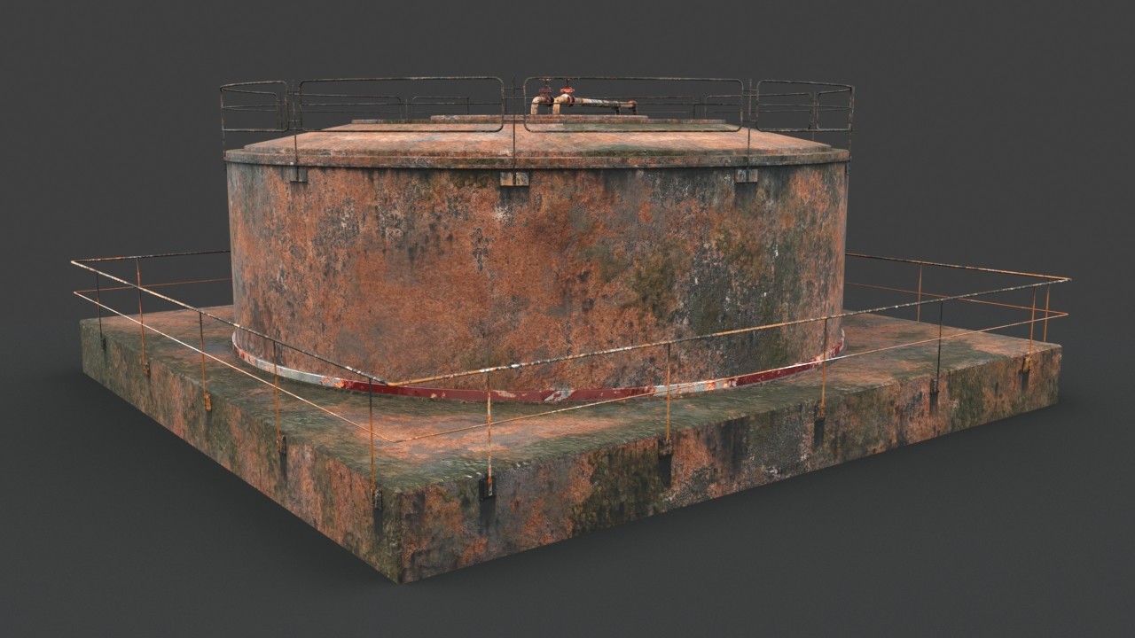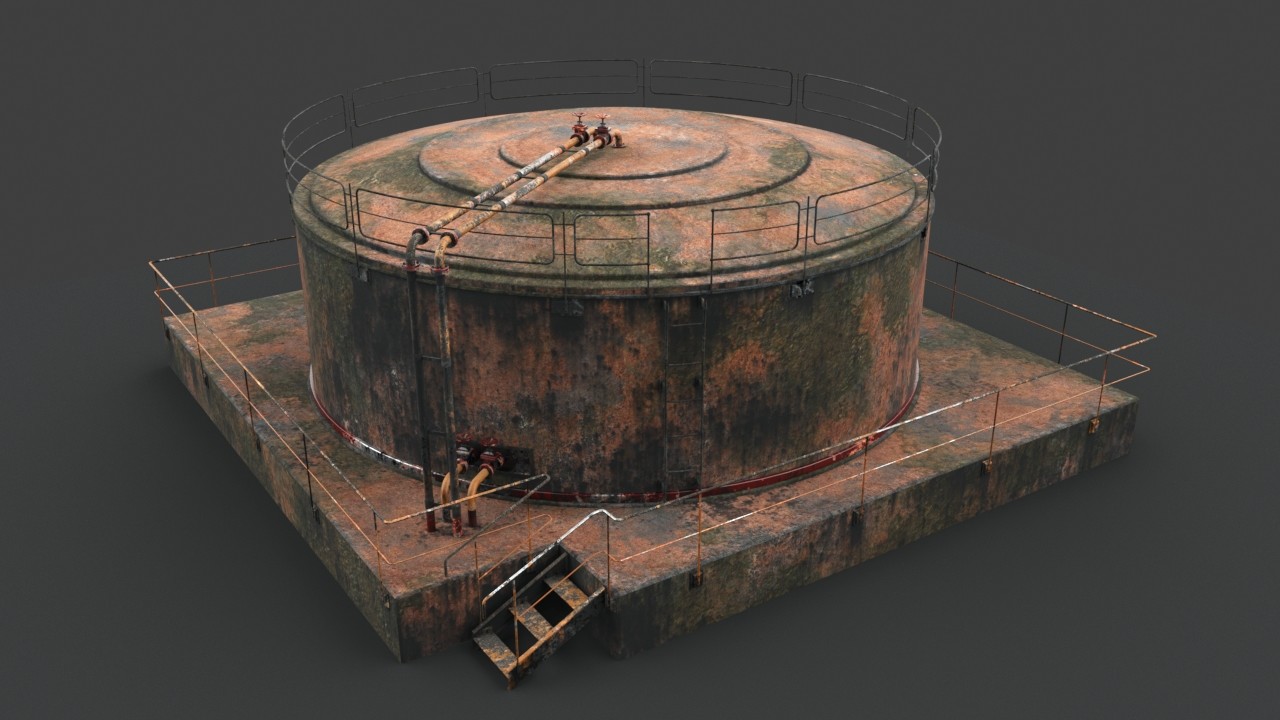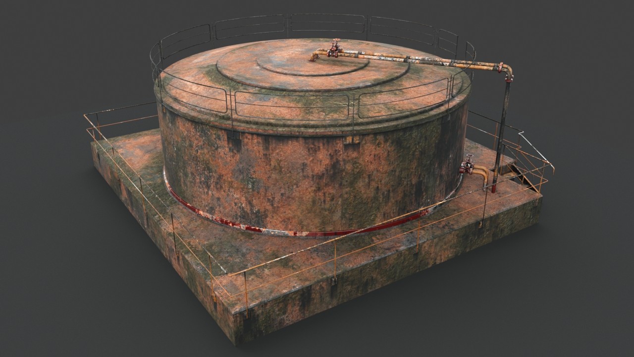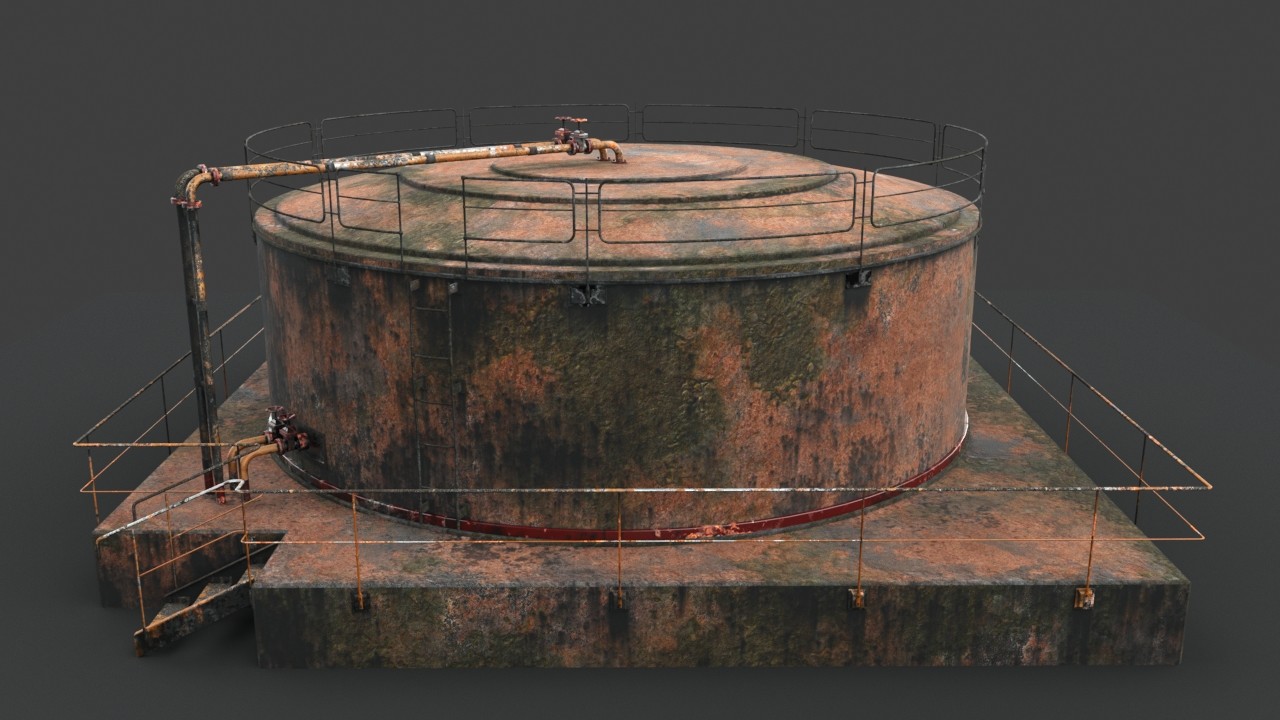 用于工业可视化的生锈液体存储。 4k PBR纹理和材料。 3ds Max2018。Corona渲染器1.7 Vray 3.6