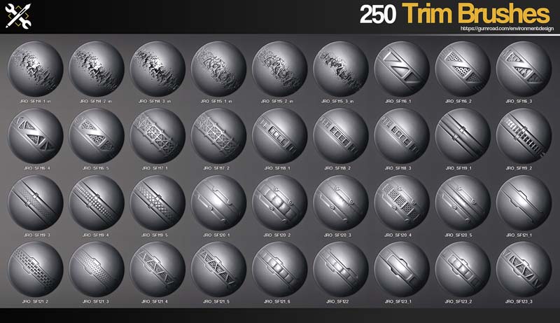 这是一套用于ZBrush的256个画笔,所有画笔都使用2048x2048 16bit alphas和PSD,Tiff,Jpeg alphas也包括在内。这些画笔也将能够在不久的将来在Substance painter中使用。