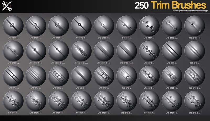 - 256个ZBrush画笔。