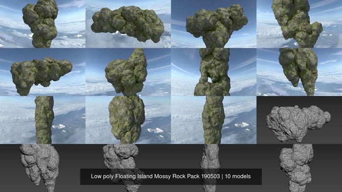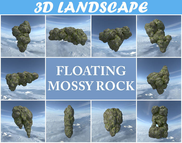 低多边形浮岛苔藓岩苔藓石素材之家精选3D模型