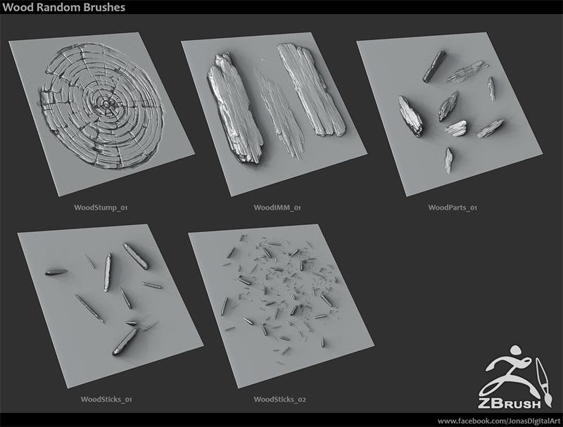 20个Alphas通道木头笔刷3D素材