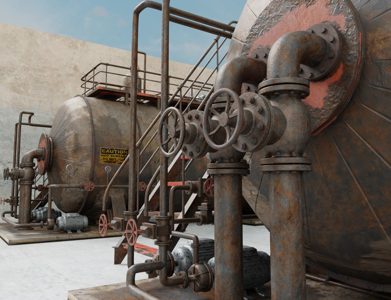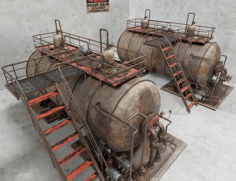 在Blender 2.8中建模的蒸汽锅炉的3D场景。 场景包含详细的管道,法兰,控制阀和泵。 所有纹理均已压缩。 场景Poly数:287,184每个锅炉的Poly数:143,834