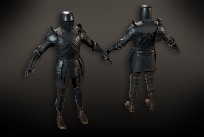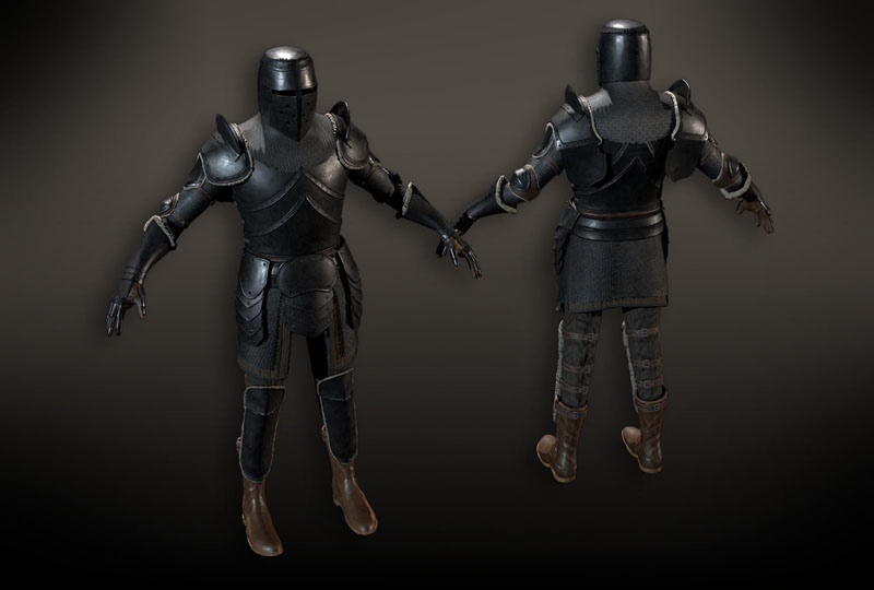 一套 Lowpoly PBR 幻想中世纪盔甲。 模型绑定到 UE4 骨架,但没有动画。 包含一个带有 IK 设置的 .blend 文件。 还提供了模型设置为人形装备的 Unity 包(装甲的动态移动部件可以使用您在项目中使用的任何解决方案进行设置)。 该包包括 3 种 4k 纹理变化:干净、破损和磨损。 该模型有两个纹理集,并分为几个部分:身体、头盔、链甲兜帽、手套、护肩、前护板、侧护板、护膝、靴子。 总多边形数:39,455 个三角形和 22,544 个顶点。