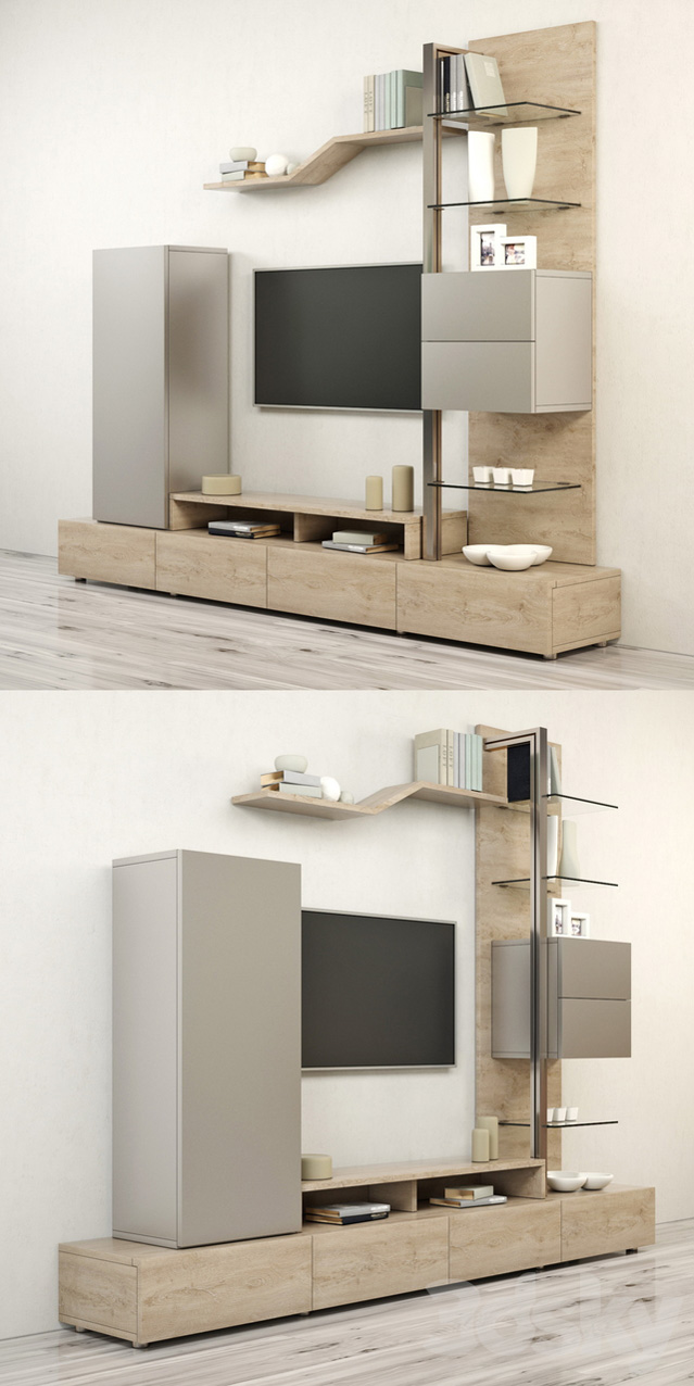 电视和多媒体家具-法国工厂GAUTIER系列ADULIS颜色:Chênesierra / Verrelaquésierra尺寸:构图,底色chênegris,L275 x H224 x P45厘米。 现阶段的装饰和电视
