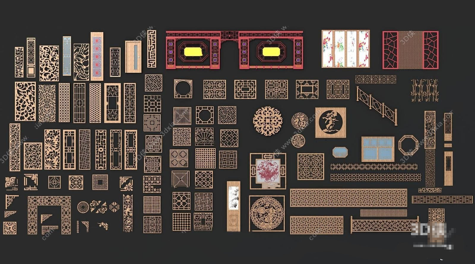 中文风雕花窗装饰素材之家精选3D模型