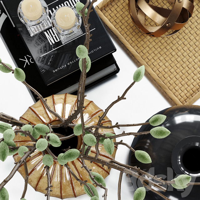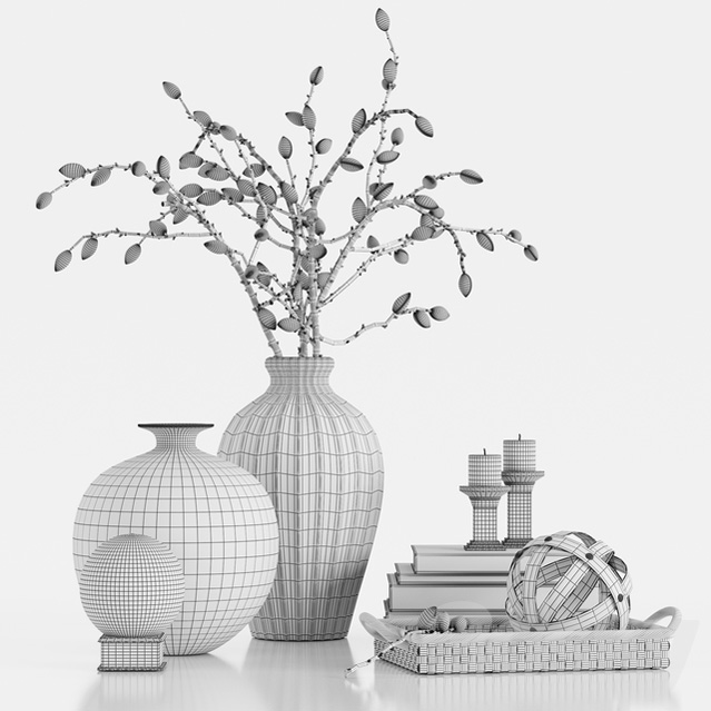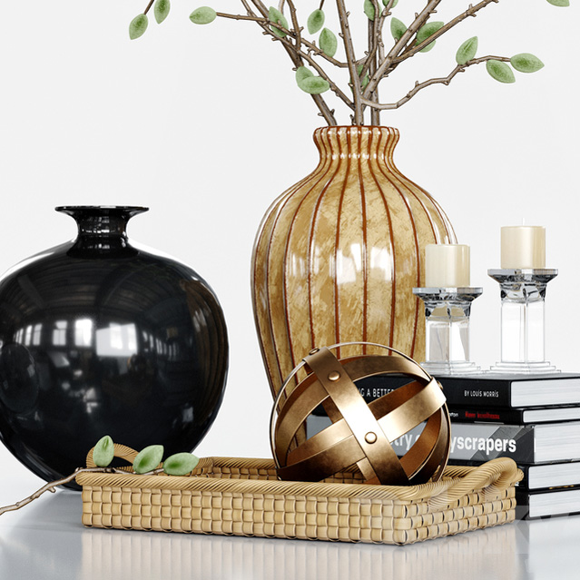 复古花瓶里的绿色杏仁室内装饰套装素材之家精选3D模型