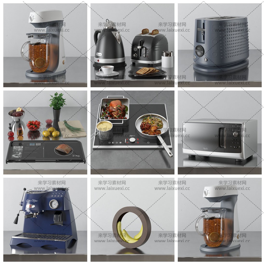 今天素材之家给大家分享的这款3D模型资源名称为:44款高品质厨房用具厨房电器3D模型,内容与厨房电器3D,厨房用具3D,厨房用品3D,3DMAX,3D模型,榨汁机3D,面包机3D,刀具3D,微波炉3D,烤箱3D,平底锅3D,MAX相关,文件大小为555.9 MB,模型文件格式为MAX。