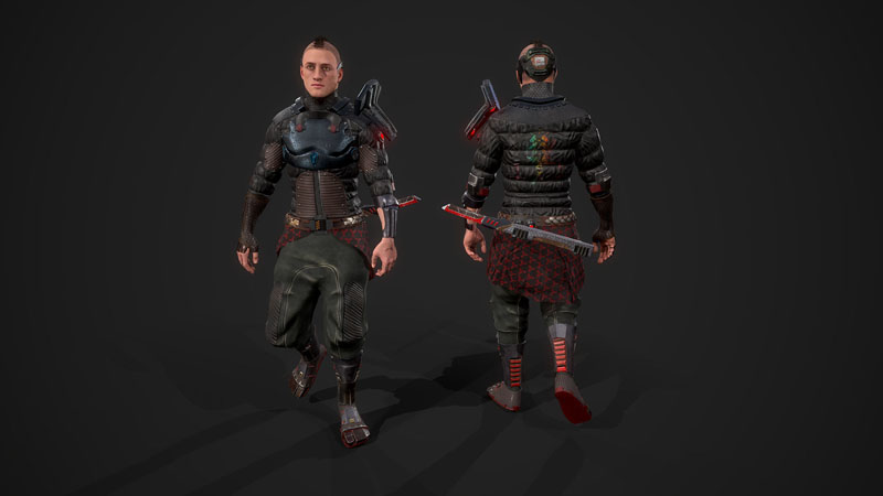 网络武士的低多边形模型,适合您的任何游戏:角色扮演游戏、策略、第一人称、第三人称