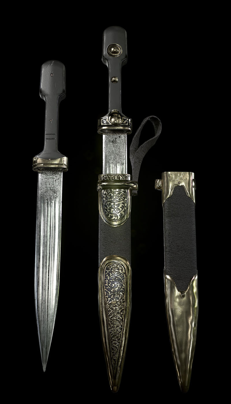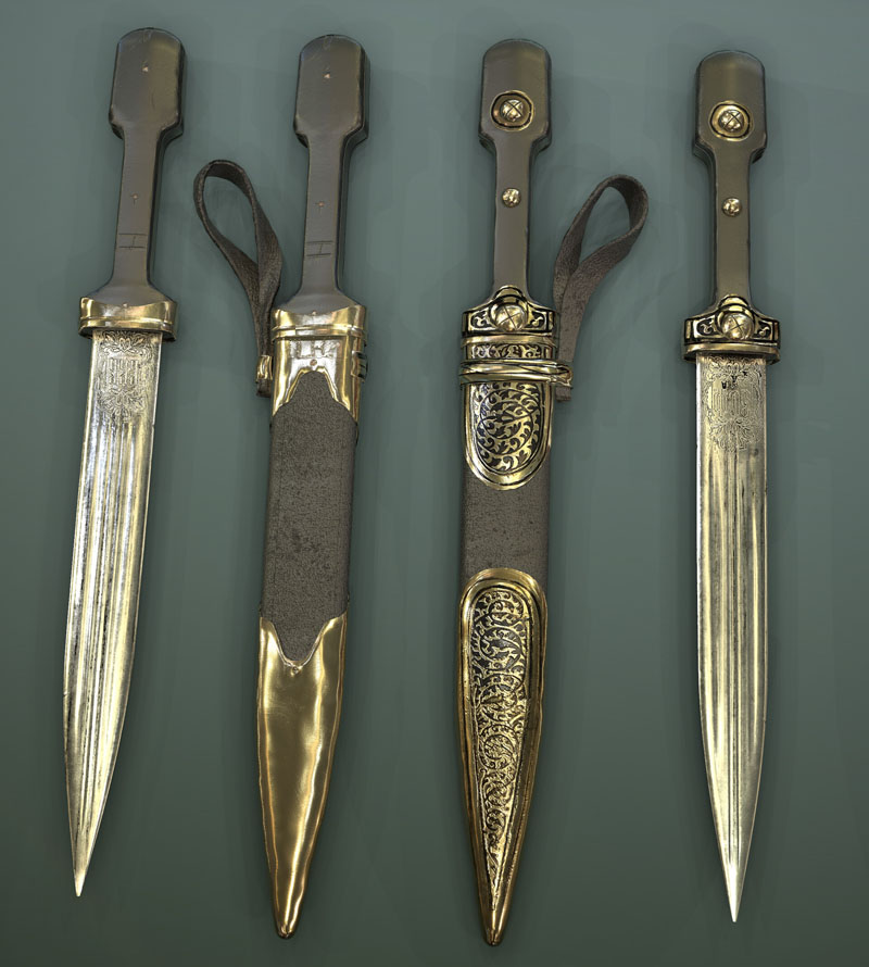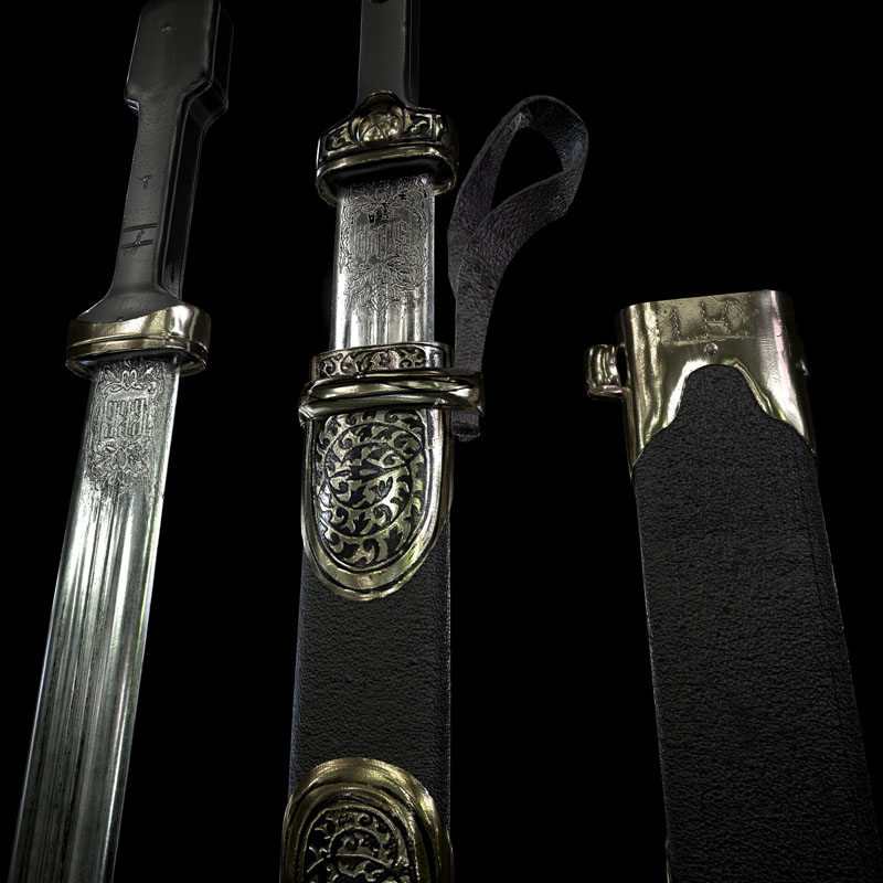用 Maya 为这把古董匕首建模,用 zbrush 雕刻,用 Substance Paint 制作纹理,用 marmoset 工具包渲染。