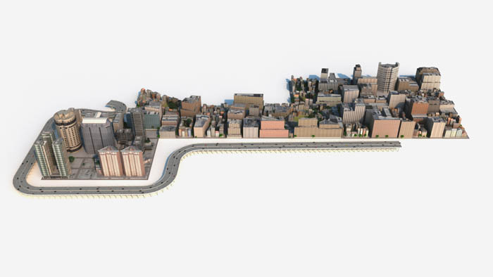 3套3D城市部分,具有来自世界不同地区的城市非常不同的模型。每一套都包含几个部分,可用于快速设置大城市。