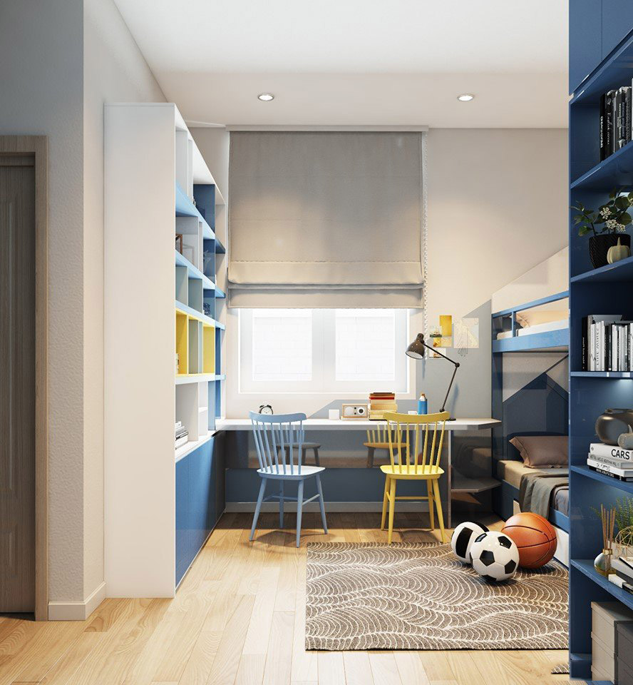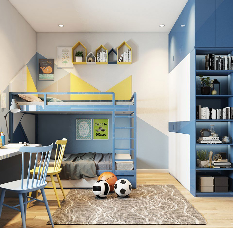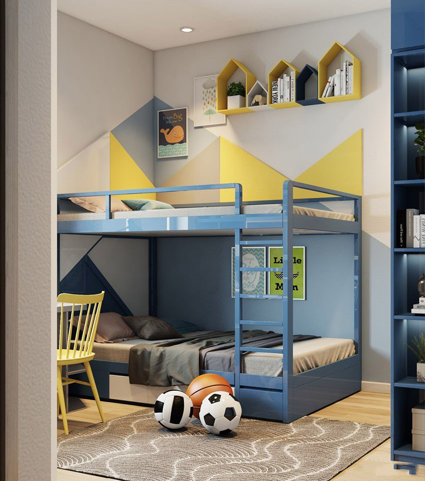 上下铺双人床和书柜组合儿童卧室场景素材之家精选3D模型