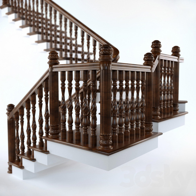私人别墅豪宅实木楼梯扶手素材之家精选3D模型
