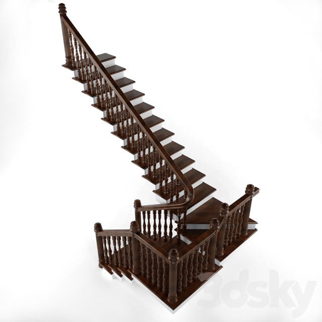 一个经典的木制楼梯,在私人豪宅中订购,模型是在CNC之下制造的)